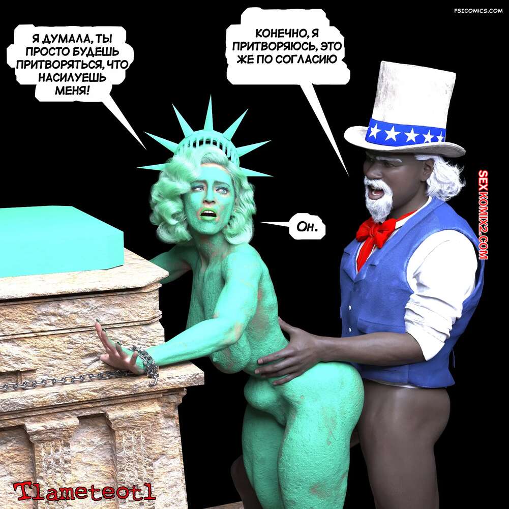 Порно комикс Трах четвертого июля. The Fuck of July. Tlameteotl. Горячая красотка согласилась попозировать для темнокожего старика в его творчестве. Он просит девушку принять откровенные позы, а затем стал ее соблазнять на секс с ним.