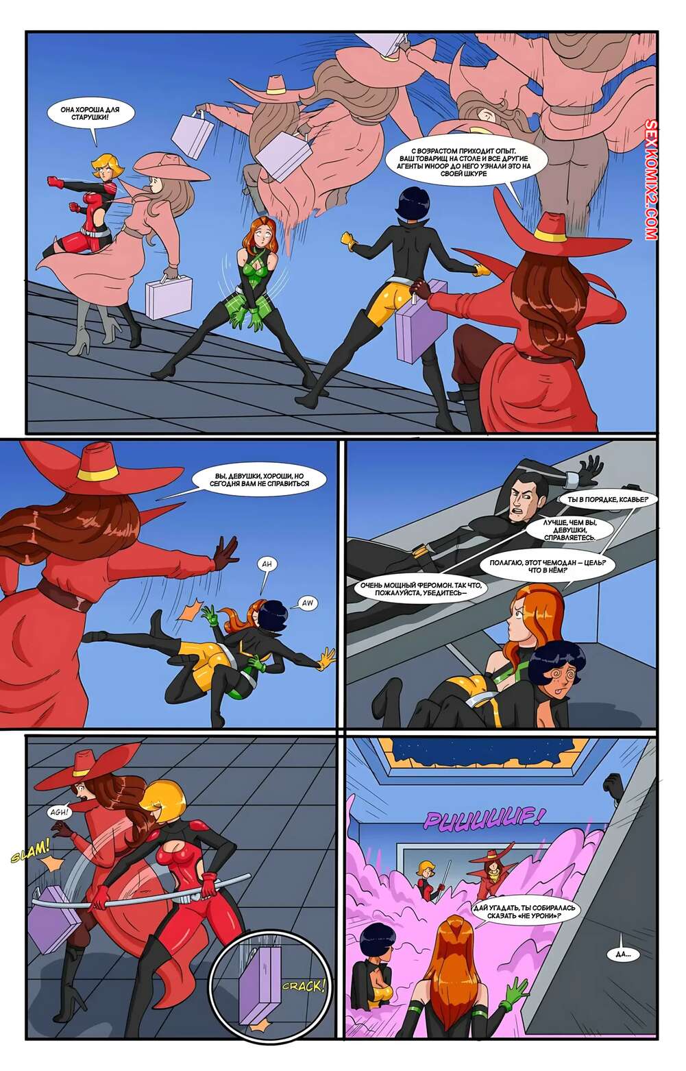 Порно комикс Totally Spies. Ночи Сандиего. Sandiego Nights. RuinCountry Во время своего задания девушки из команды Тотали Спайс подверглись влиянию возбуждающего газа. Красотки поспешили раздеться, после чего стали наслаждаться членом парня, которого должны были спасти.