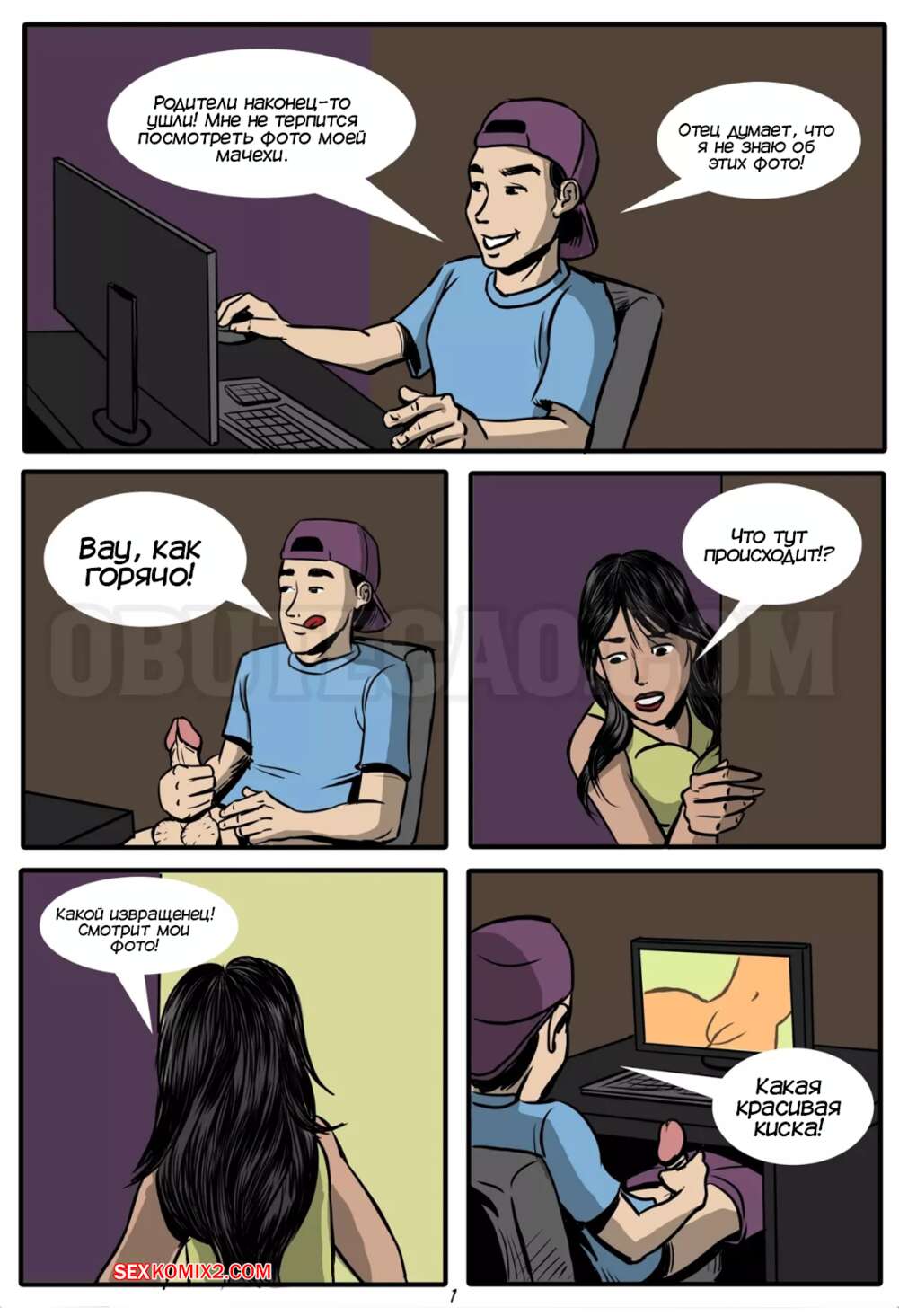 Порно комикс Мачеха. A madrasta. O Butecao Молодой парнишка думал, что он остался дома один, и решил подрочить на голые фото своей мачехи. Красотка спалила пасынка за этим делом, но решила сделать ему приятно и дала себя трахнуть.