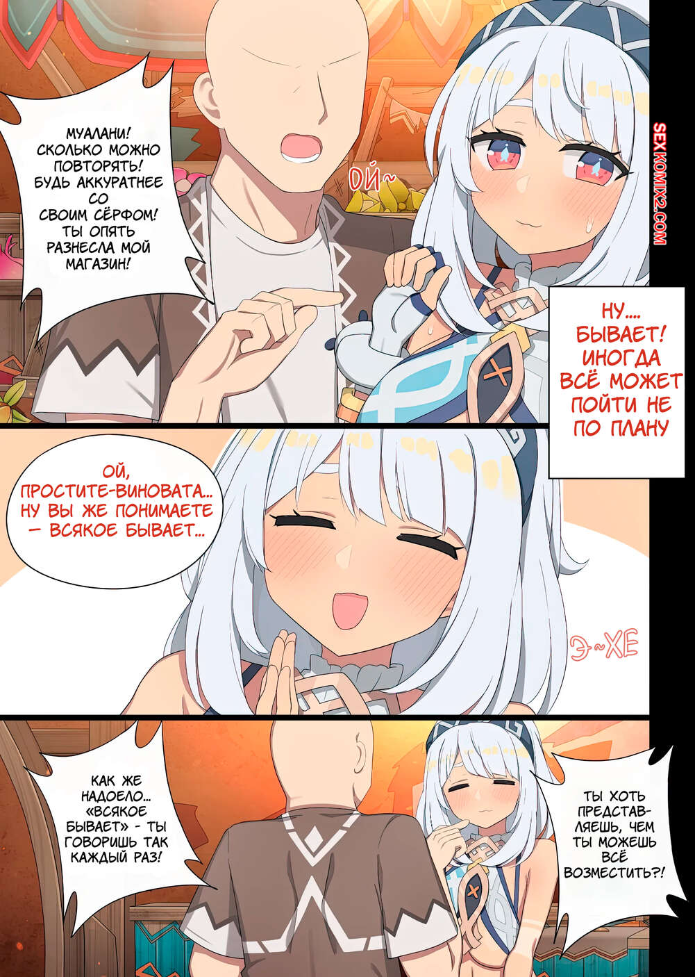 Порно комикс Genshin Impact. Муалани. Mualani. Poyeop Горячая блондинка разнесла лавку парня на улице и теперь ей предстоит расплатиться за свой косяк. Парнишка раздевает красотку и трахает ее своим большим хуем, заполняя ее своей горячей спермой.