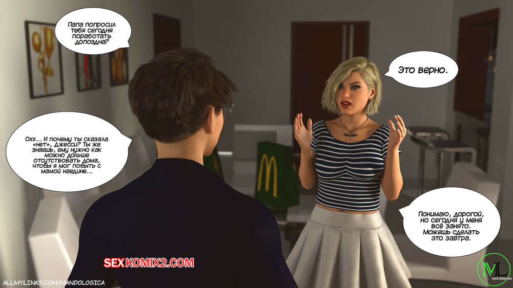 Порно комикс Запретное пламя. Часть 6. Forbidden Flames. MandoLogica Катерина наконец проснулась после того, как Бен трахал ее пизденку ночью, пользуясь бессознательным состоянием мамы. Парнишка отправился в школу, чтобы рассказать Джесси о произошедшем.
