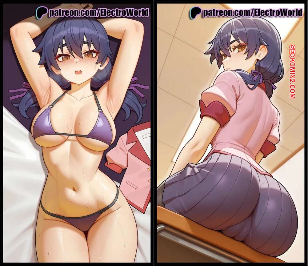 Порно комикс Suruga Kanbaru. ElectroWorld Горячая брюнетка с шикарным телом давно влюблена в своего дружка. ОНа раздевается перед ним и соблазняет парня аппетитными формами, после чего раздвигает ножки и дает ему себя выебать во все дырочки.