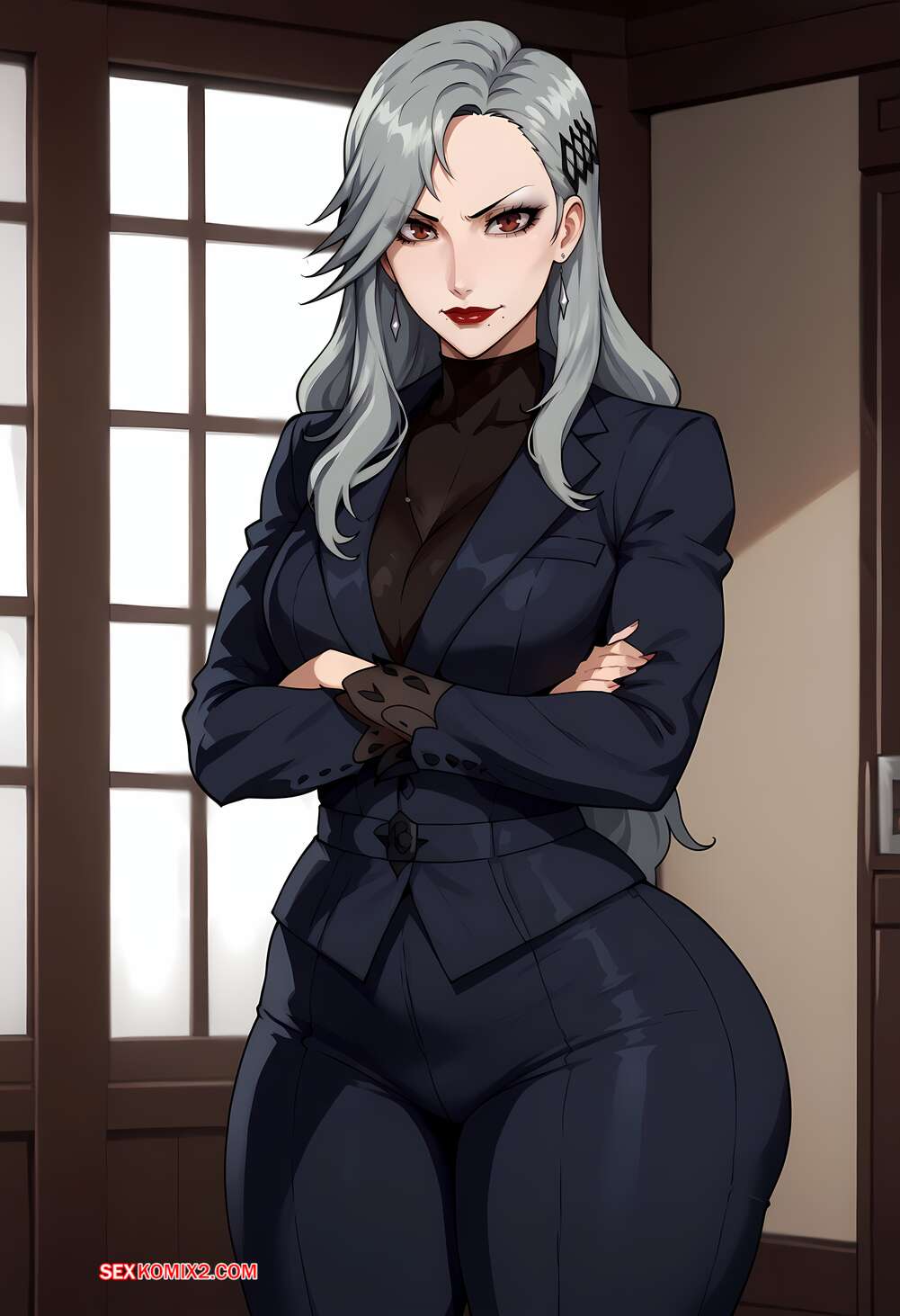 Порно комикс Sae Niijima x BBC. Floxin Горячая блондинка надела сексуальное белье для своего темнокожего дружка. Красотка встала на колени и отсосала хуй парня, после чего раздвинула ножки и дала ему себя выебать.