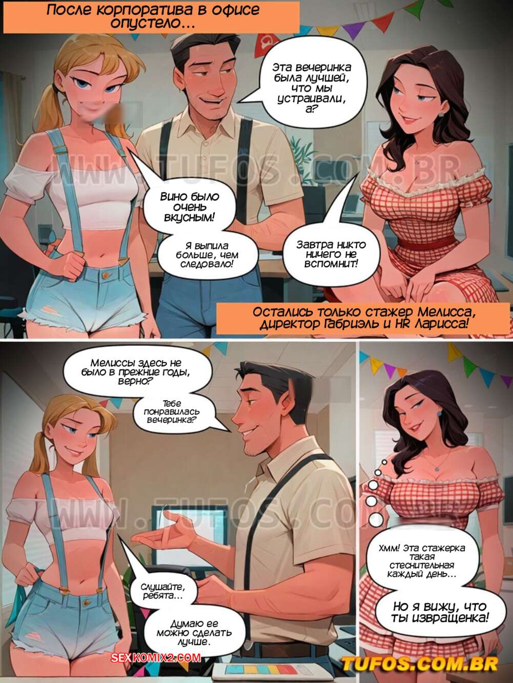 Порно комикс Дом мамы Джоаны. Часть 34. Casa da mae Joana. Tufos В офисе была вечеринка и директор Габриэль остался с молодой стажеркой и горячей милфой HR. Девушки предложили продолжить тусовку и устроили невероятную групповую еблю.