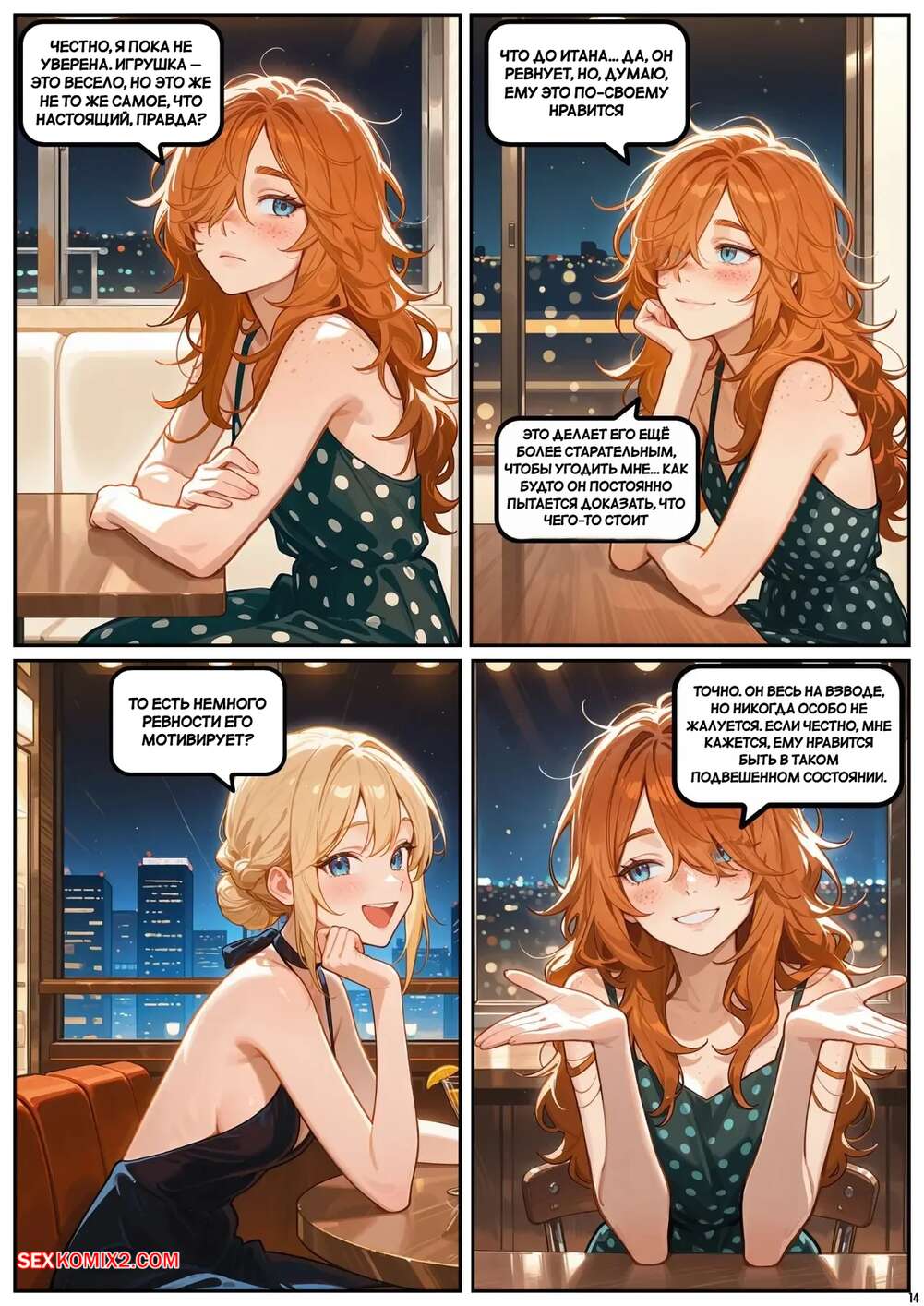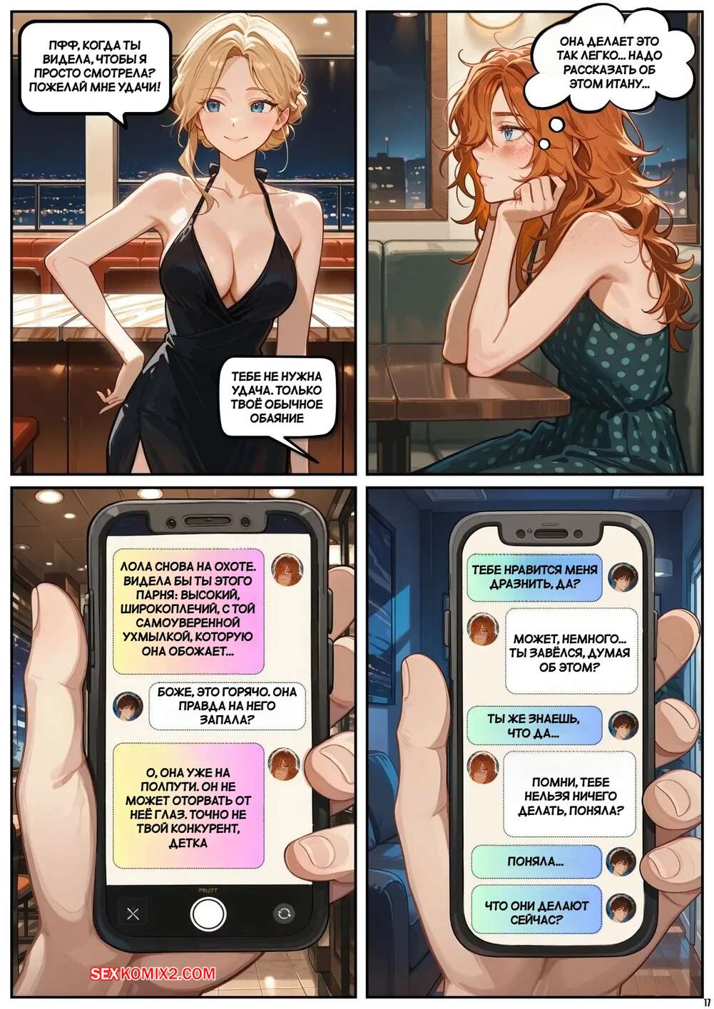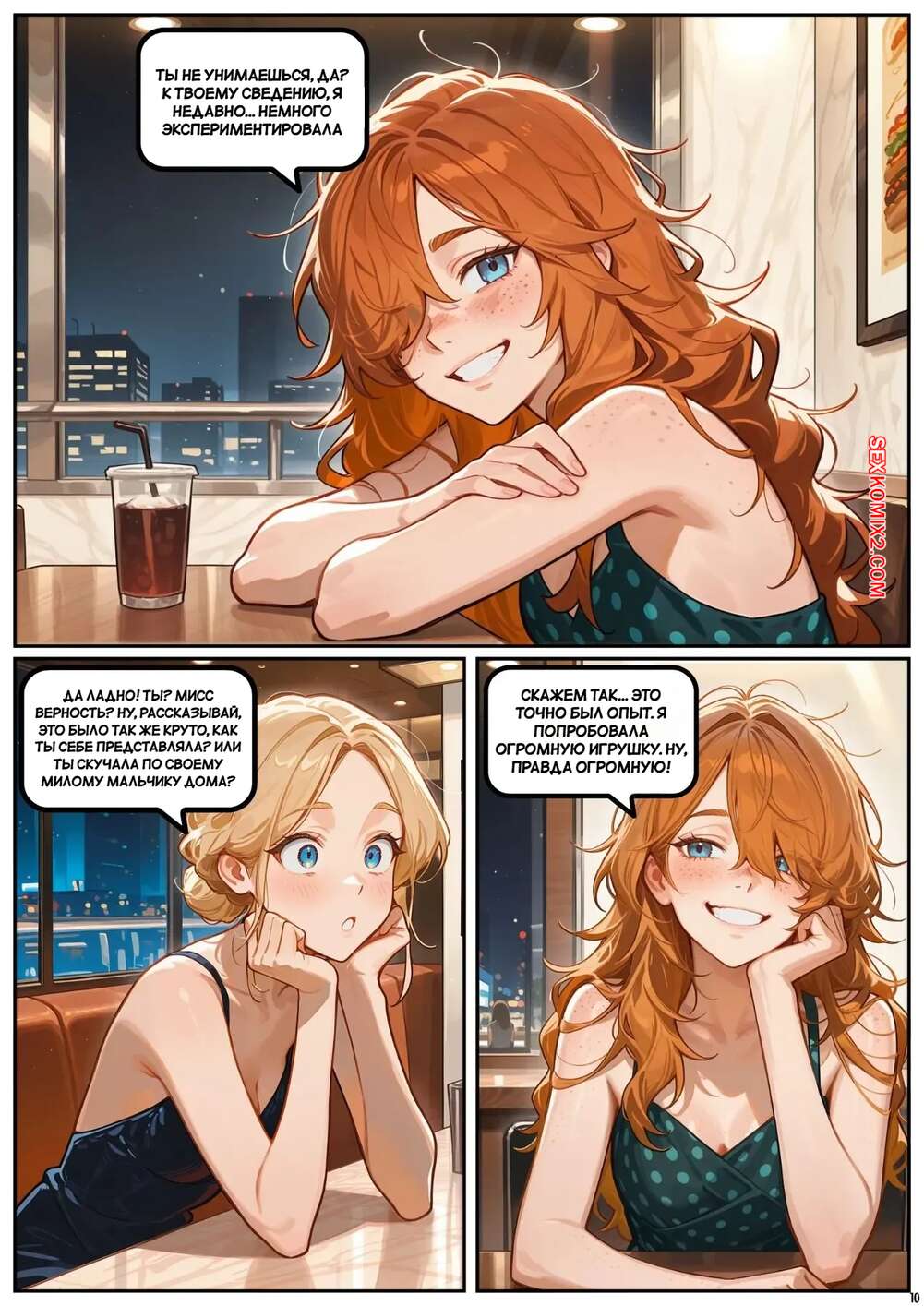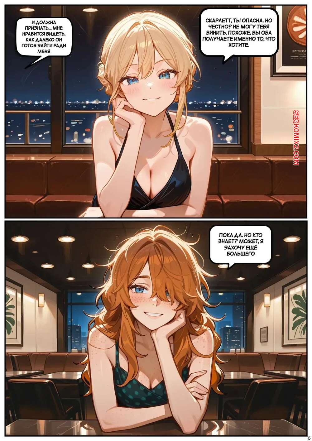 Порно комикс Скарлет Блейз. Часть 8. Между наблюдением и желанием Две подруги отправились вечером в ресторан, где блондиночка сразу положила глаз на симпатичного темнокожего парня. Они отправились в туалет, где красотка отсосала хуец нового знакомого и дала ему себя выебать.