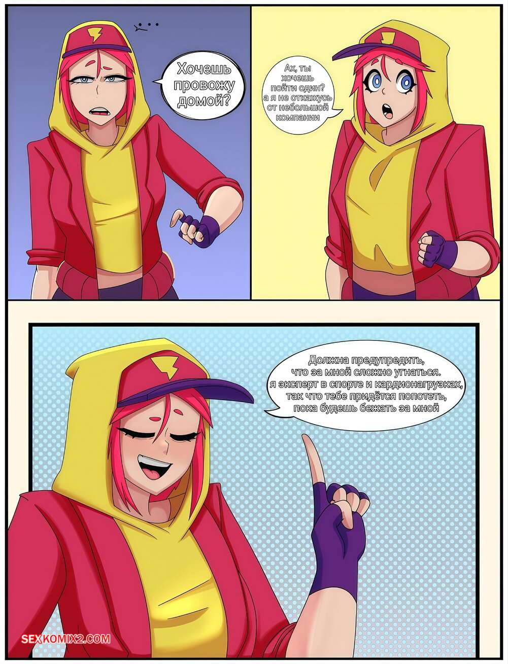 Порно комикс Brawl Stars. Кардио тренировки. Rutina De Cardio. Красотка любит тренироваться в парке, она предложила парню награду в виде секса если он сможет ее обогнать. Возможно она не рассчитала свои силы, или это был ее план. Но все же он обогнал ее и позже вогнал в нее свой гигантски хуй.