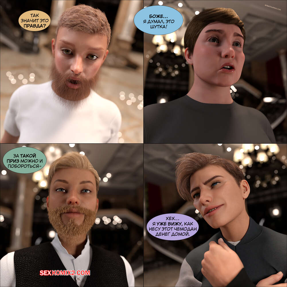 Порно комикс Бархатный соблазн. Часть 1. Silktrap. Kizaru3D. Четверо парней были отобраны, чтобы учувствовать в исследовательском проекте. Причем это не просто исследование, а соревнование. За главный приз придется побороться.