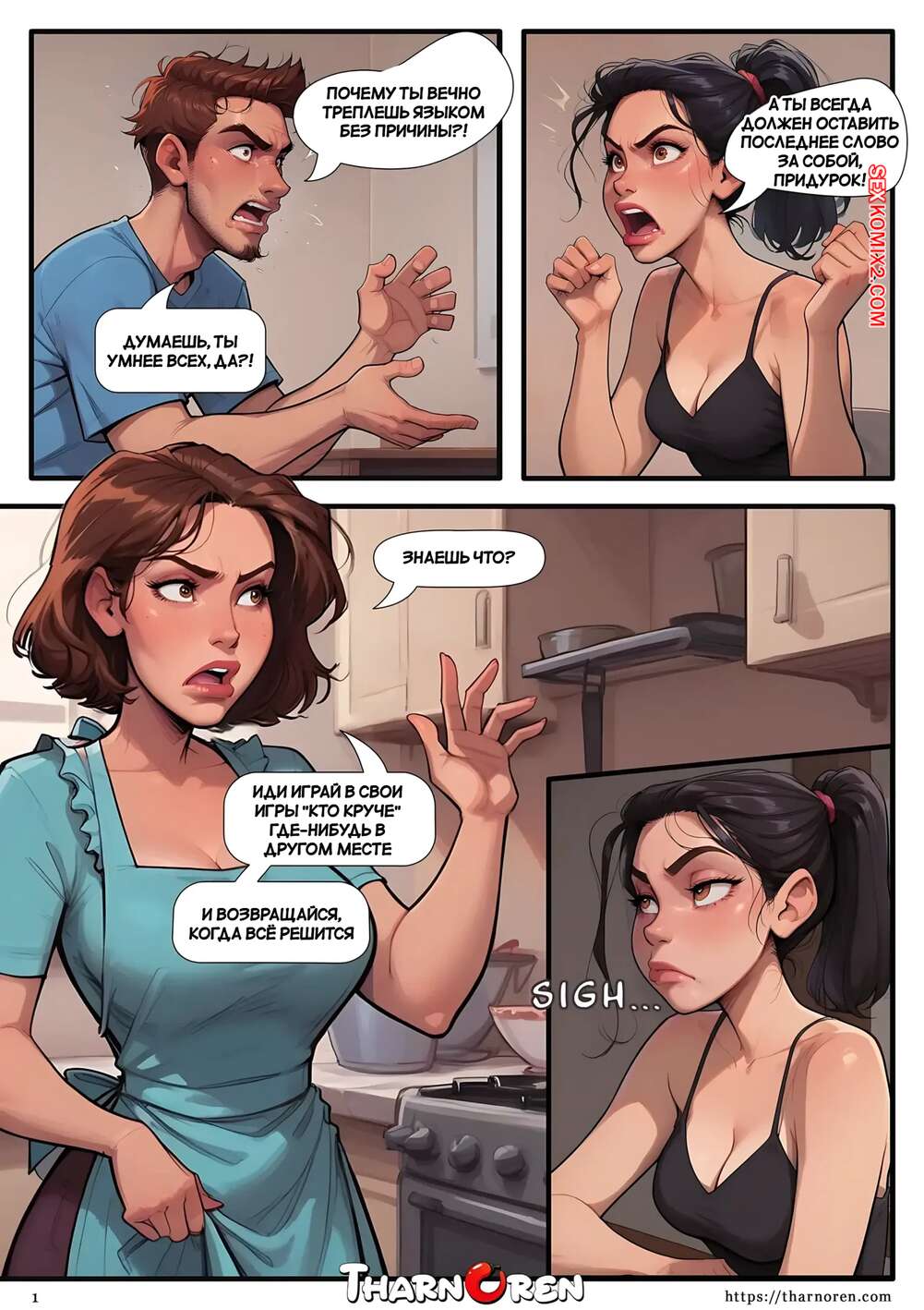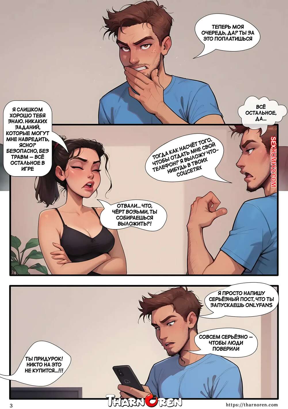 Порно комикс Спорим, что нет. Bet You Wont. Tharnoren. Брат с сестрой много спорили и это переросло в игру. Парню надоело поведение сестренки, поэтому он достал свой член и приказала сестренке его отсосать.