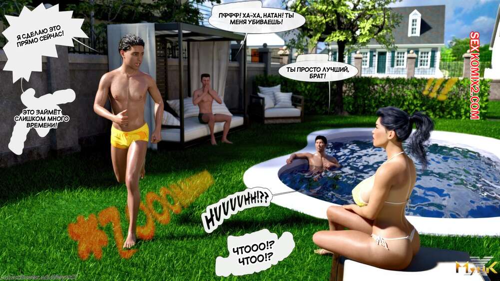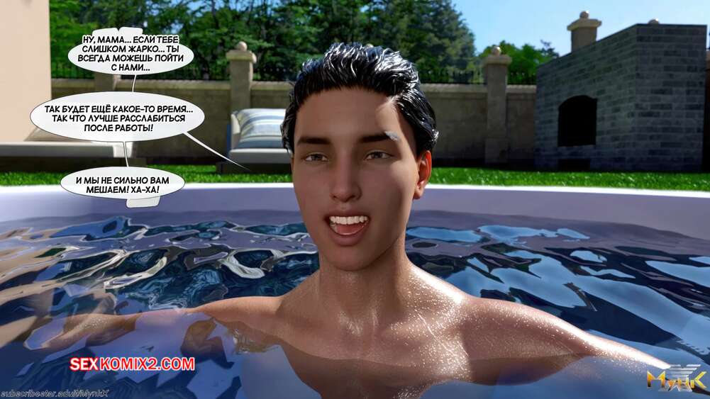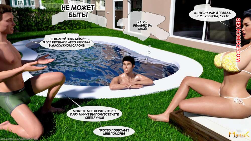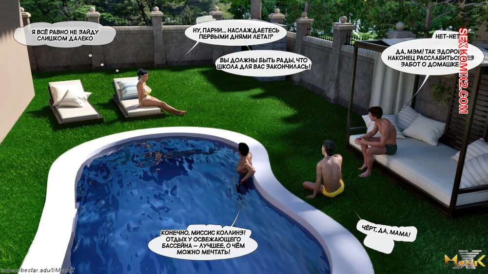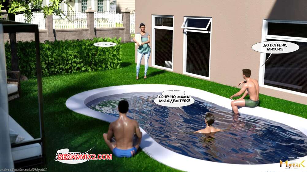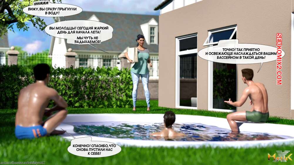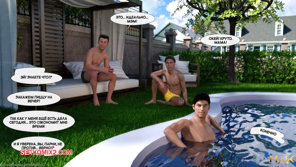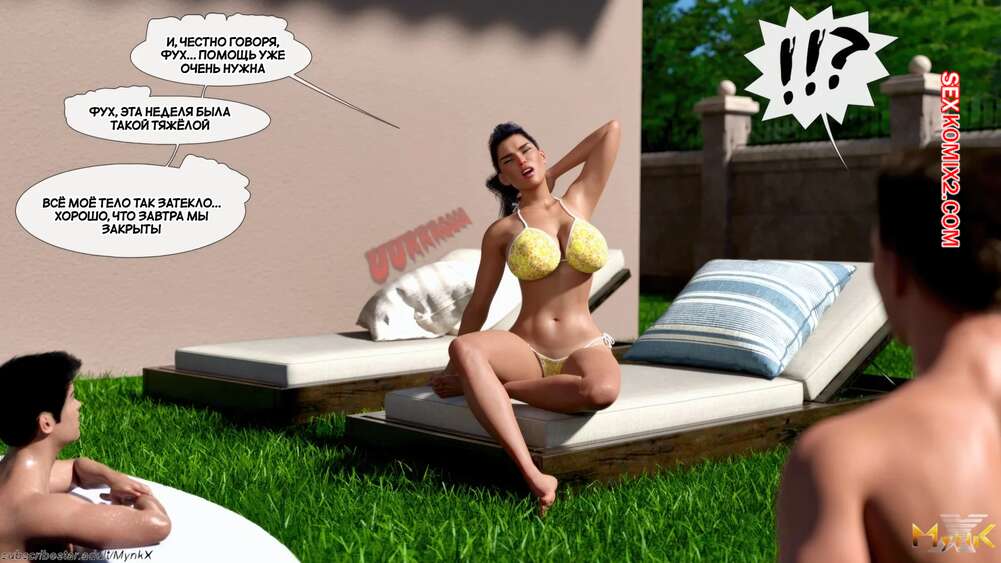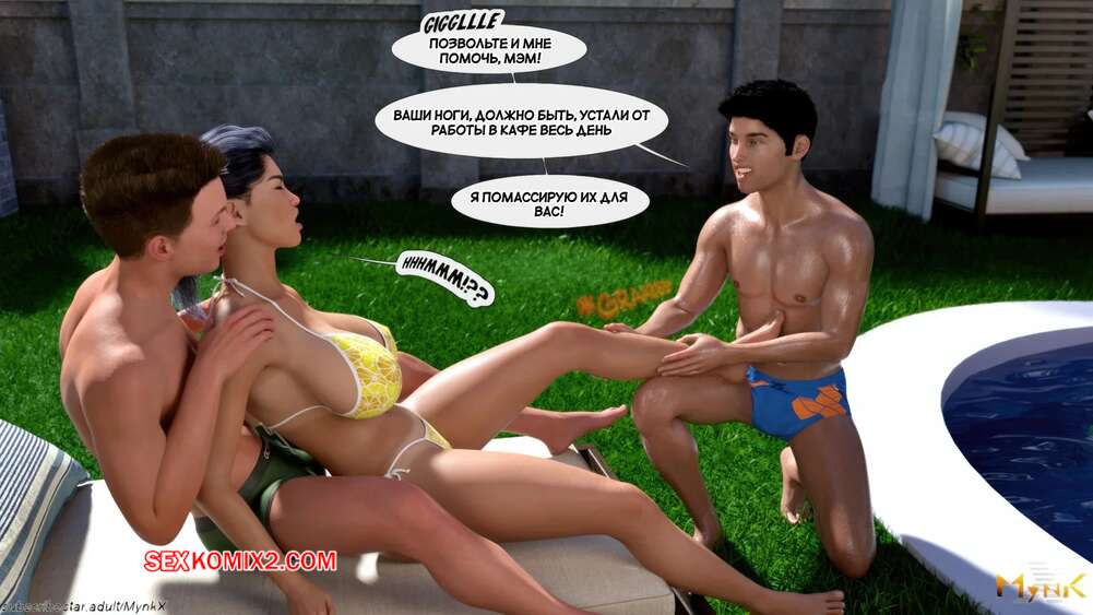 Порно комикс Кафе Фоли. Часть 1. Cafe Folies. Mynkx. Горячая брюнетка держит свое кафе, после тяжелого рабочего дня а пришла домой и увидела, что ее сын со своими друзьями купаются в бассейне у дома. Она присоединилась парням. Молодые парни смогли развлечь эту милфу и поднять ей настроение.