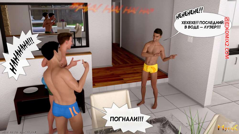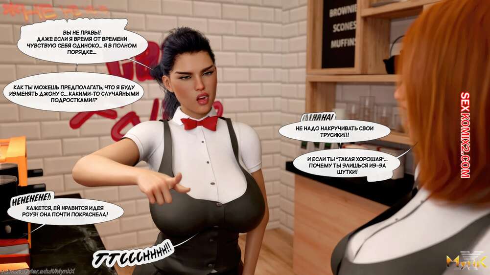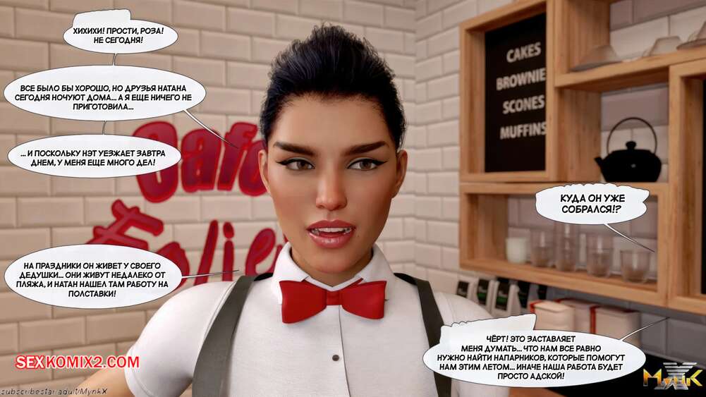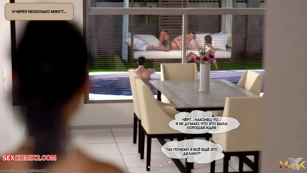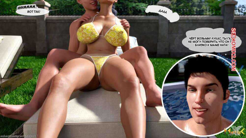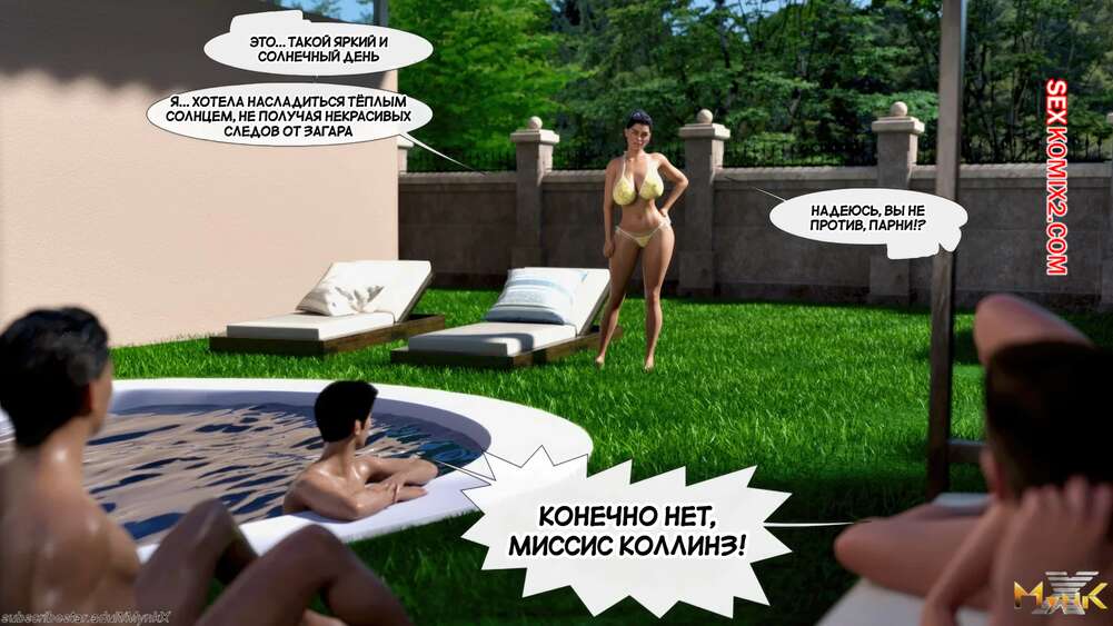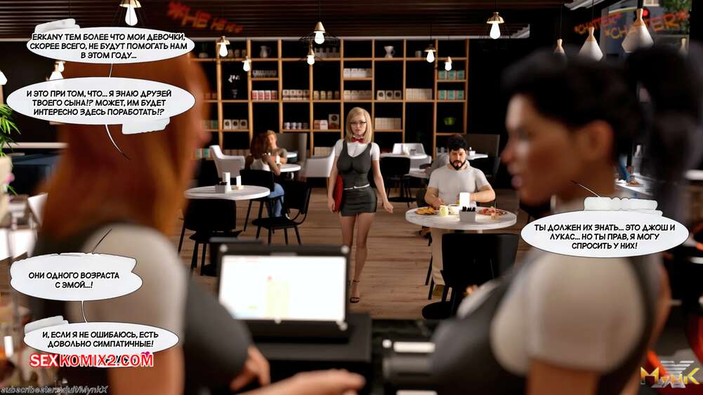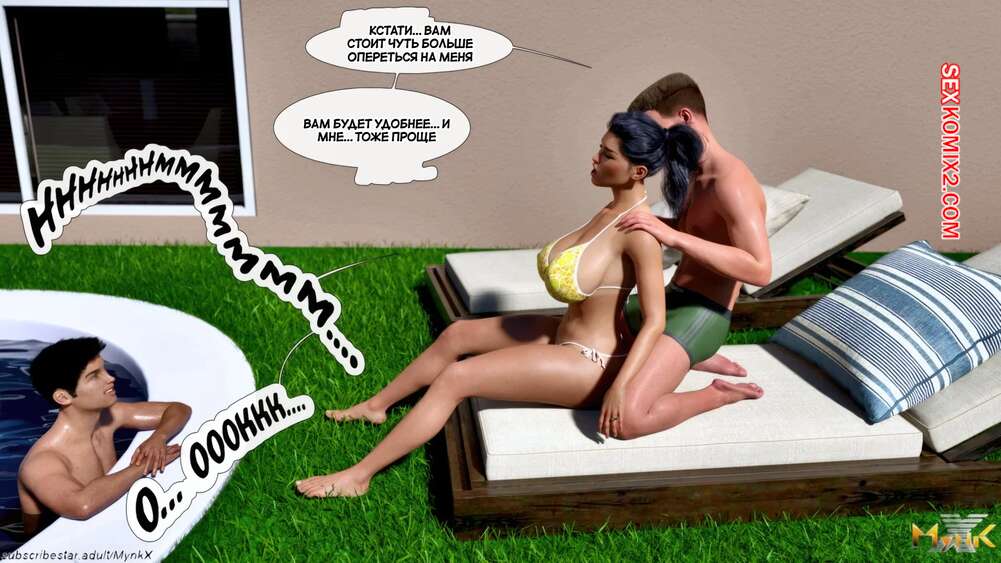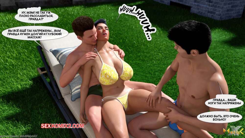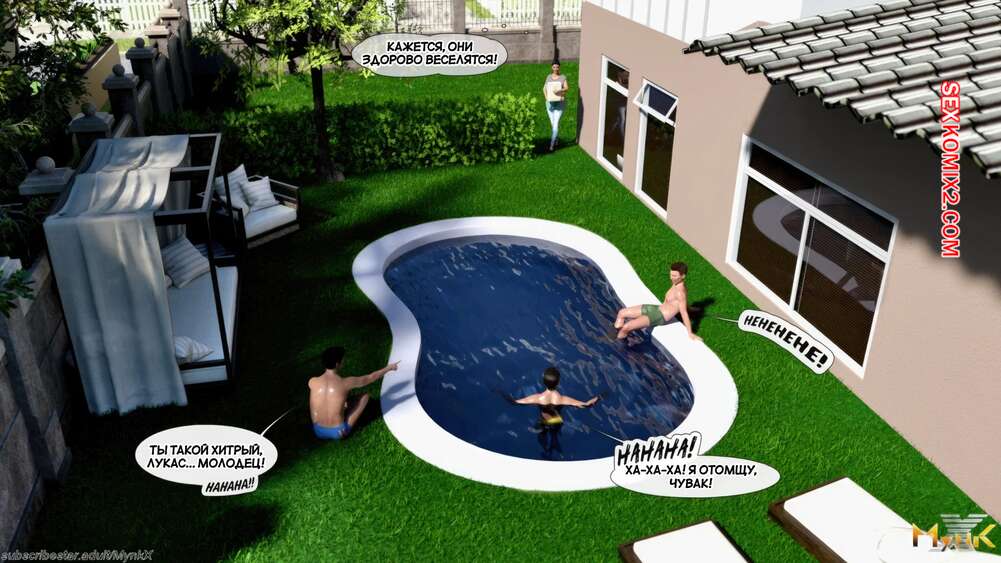 Порно комикс Кафе Фоли. Часть 1. Cafe Folies. Mynkx. Горячая брюнетка держит свое кафе, после тяжелого рабочего дня а пришла домой и увидела, что ее сын со своими друзьями купаются в бассейне у дома. Она присоединилась парням. Молодые парни смогли развлечь эту милфу и поднять ей настроение.
