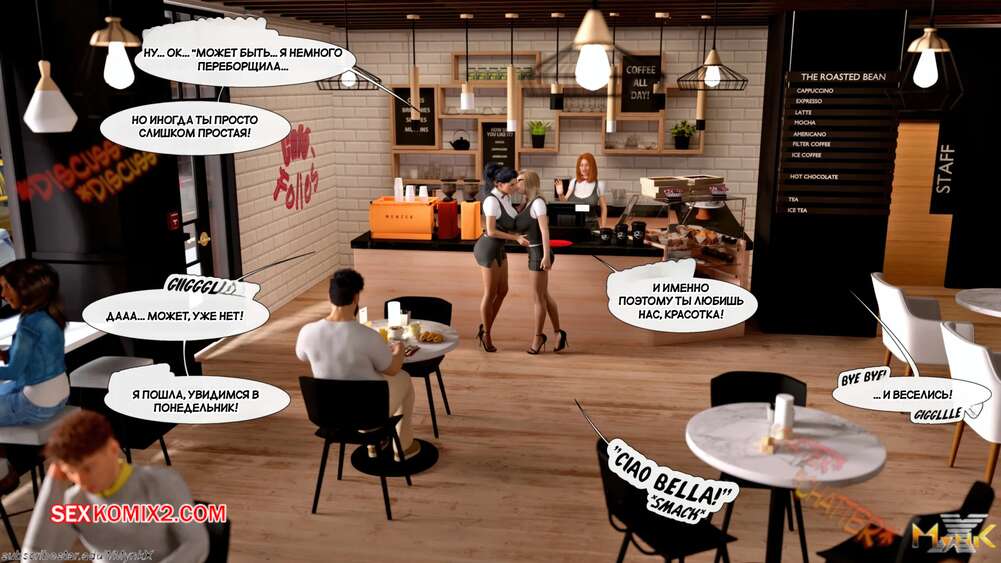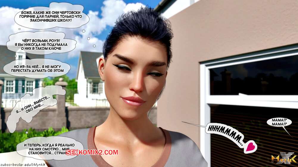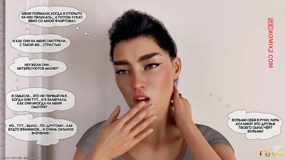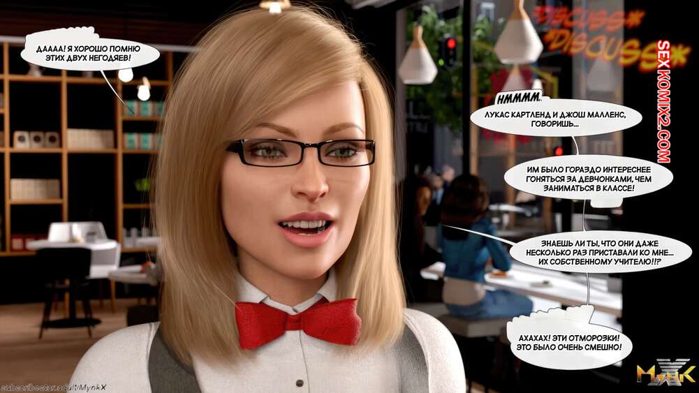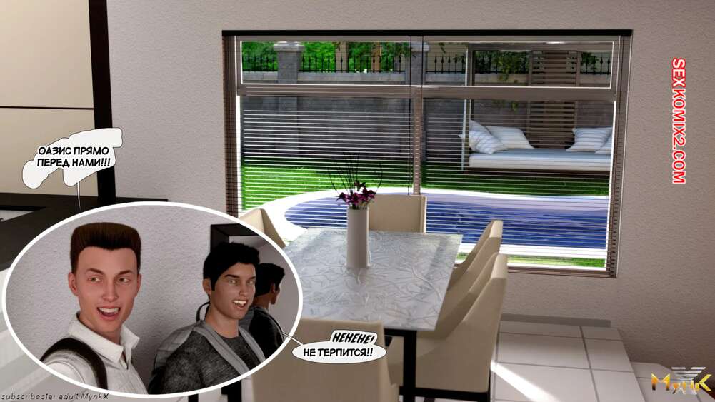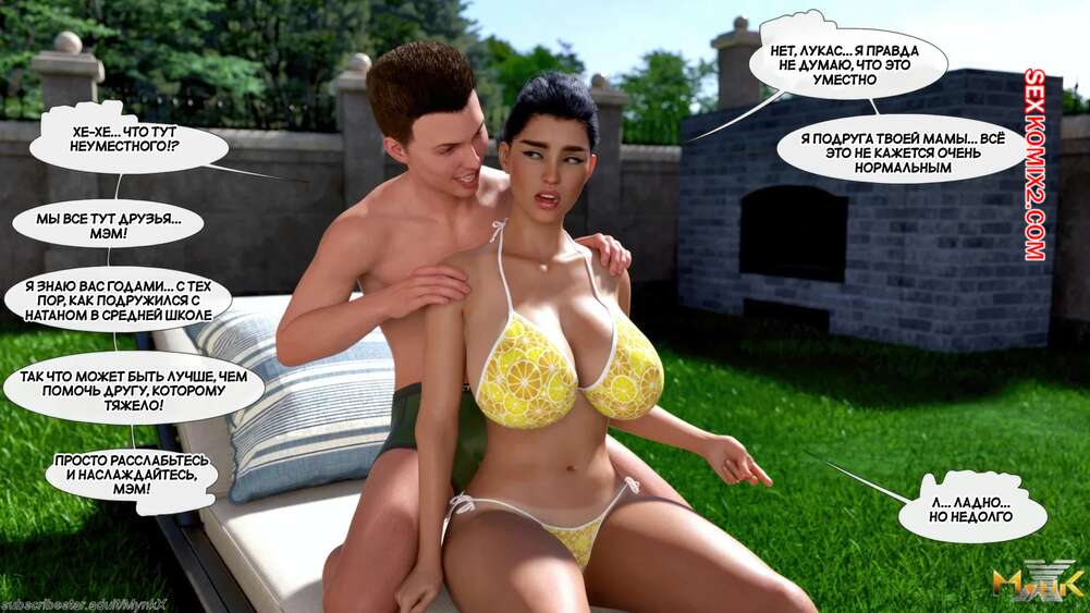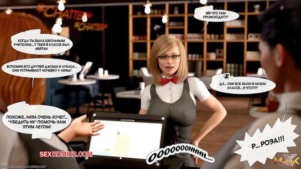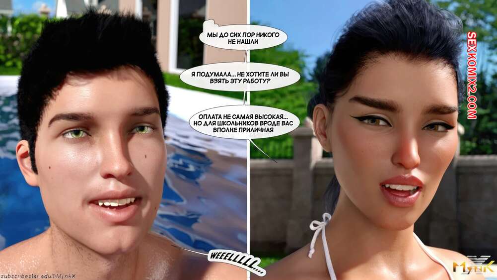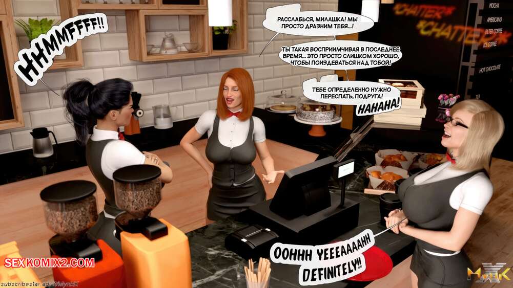 Порно комикс Кафе Фоли. Часть 1. Cafe Folies. Mynkx. Горячая брюнетка держит свое кафе, после тяжелого рабочего дня а пришла домой и увидела, что ее сын со своими друзьями купаются в бассейне у дома. Она присоединилась парням. Молодые парни смогли развлечь эту милфу и поднять ей настроение.