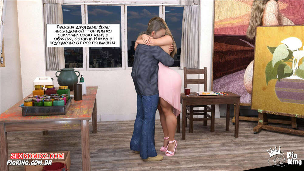 Порно комикс Николь. Часть 6. Nicoly. PigKing Горячая милфа Николь вернулась домой от Билла и сразу рассказала мужу о случившемся. Его это очень завело, поэтому он стал лизать пизденку любимой и затем трахнул ее.
