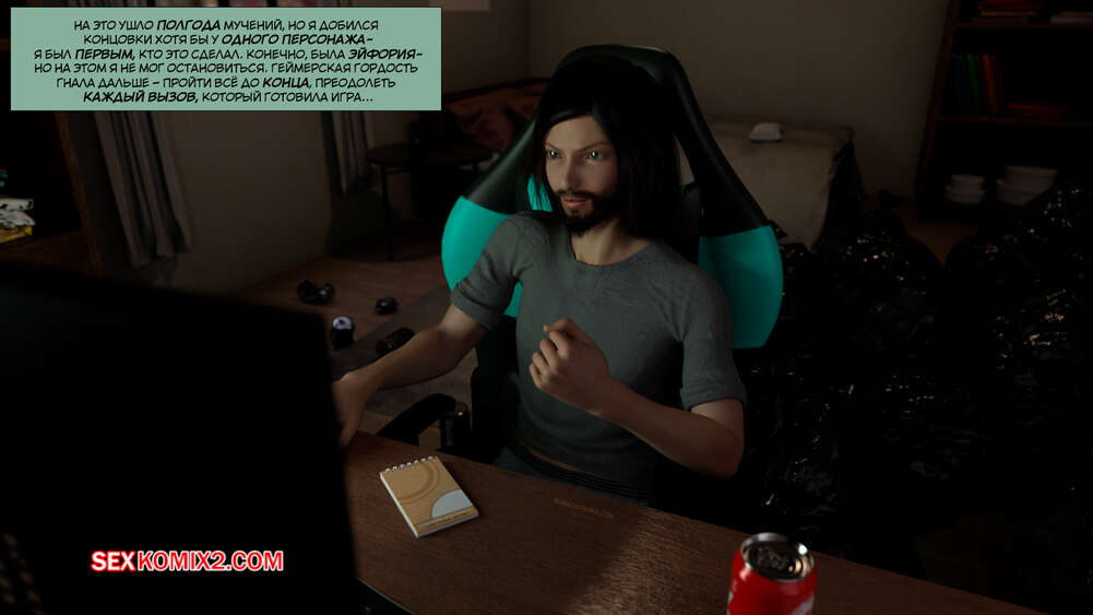 Порно комикс Игрок. Player 1. Kizaru3D. Парень просидел в игре несколько месяцем. По сюжету игры он сигмасамец, все женщины хотят его. Он имеет их сразу по не сколько. Но когда он сталкивается с суровой реальность, ему становиться тяжело.