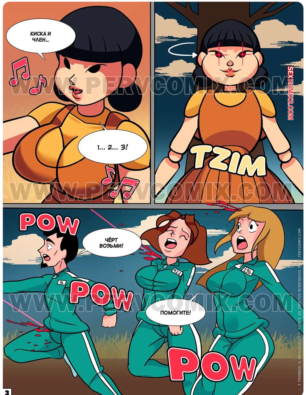 Порно комикс Игра в кальмара. Раунд 6. Сексуальные игры. Часть 1. Jogos de sexo. PervComix. Игра называется киска или член, это смертельные игры, если участки не кончат на раз, два, три то их ждет смерть. Все просто кончи или умри, выживут только скорострелы.