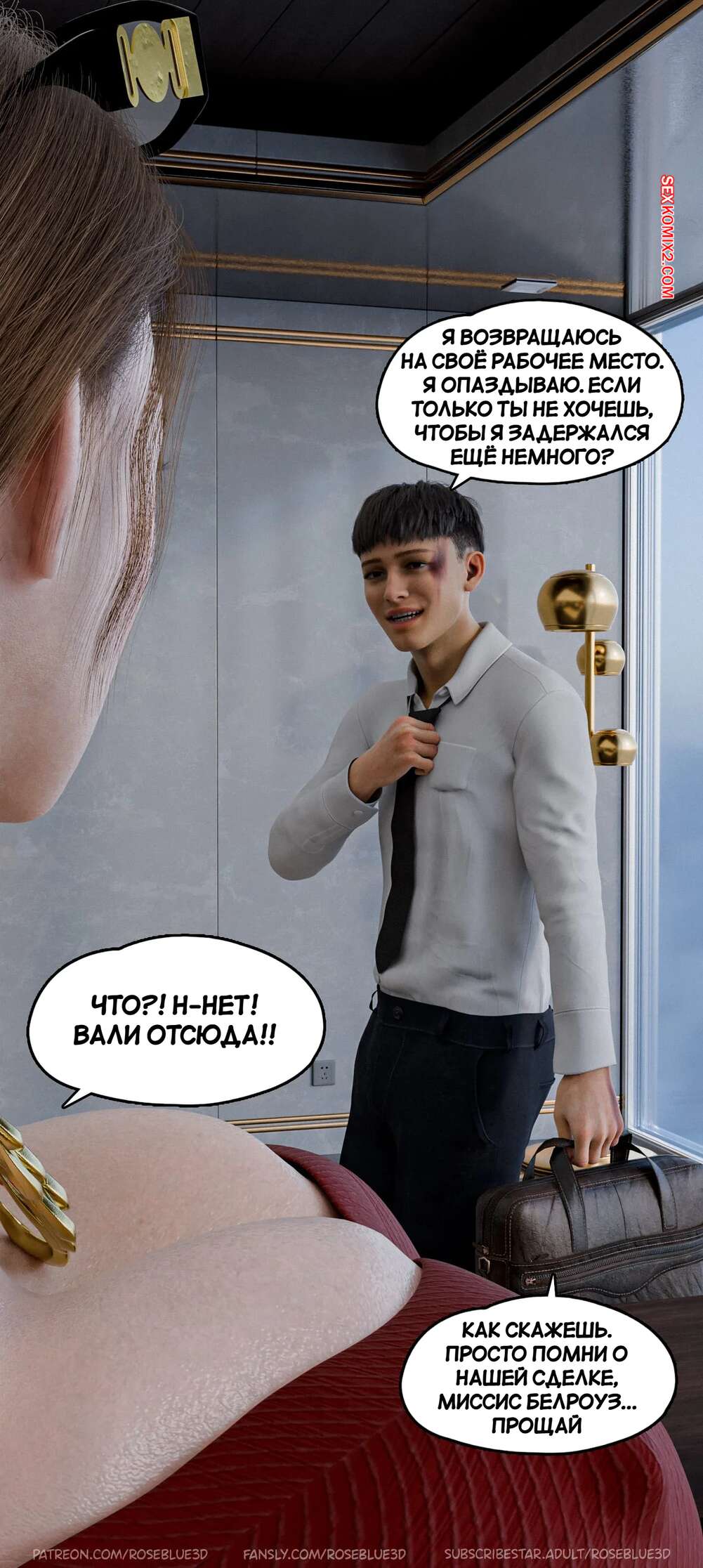 Порно комикс Свободен. Часть 3. Dismissed. Rose Blue 3D. Работник приник в кабинет своей начальницы и подкараулил ее там. Он хотел обсудить с ней свою зарплату. Но женщина отказала в повышении, тогда от трахнул ее для компенсации.