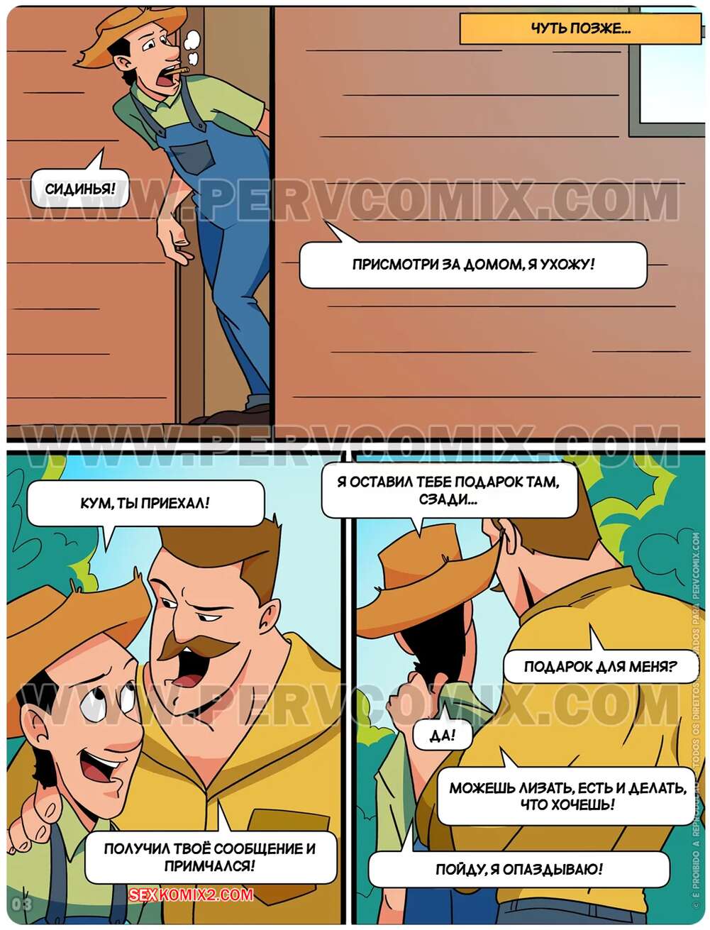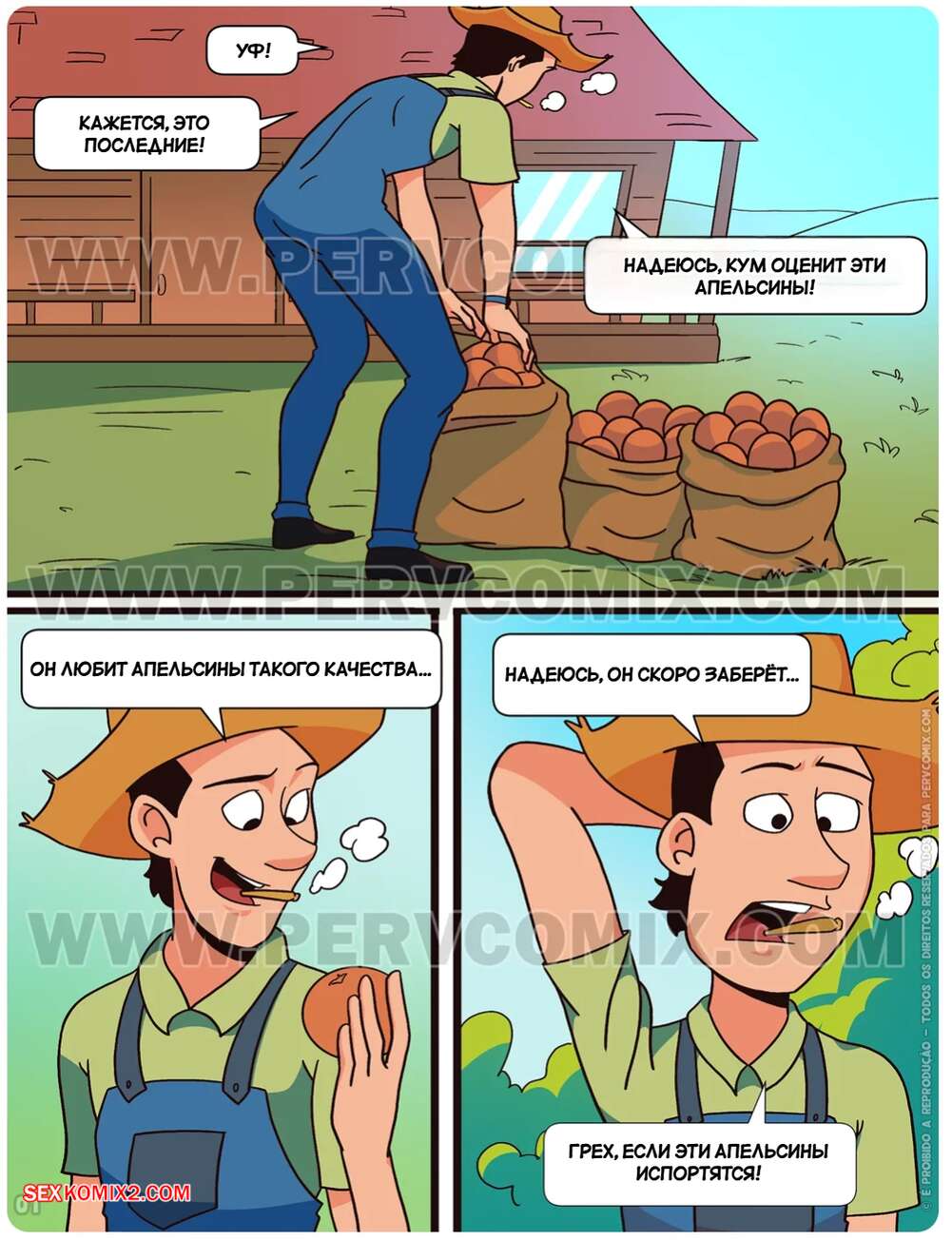 Порно комикс Придурки. Часть 8. Os Jecas. PervComix. Мужчина хотел отдать своему другу апельсины, но не верно это ему объяснил. Друг подумал, что он предлагает трахнуть его дочь, так он и поступил, надо было ясней выражаться.