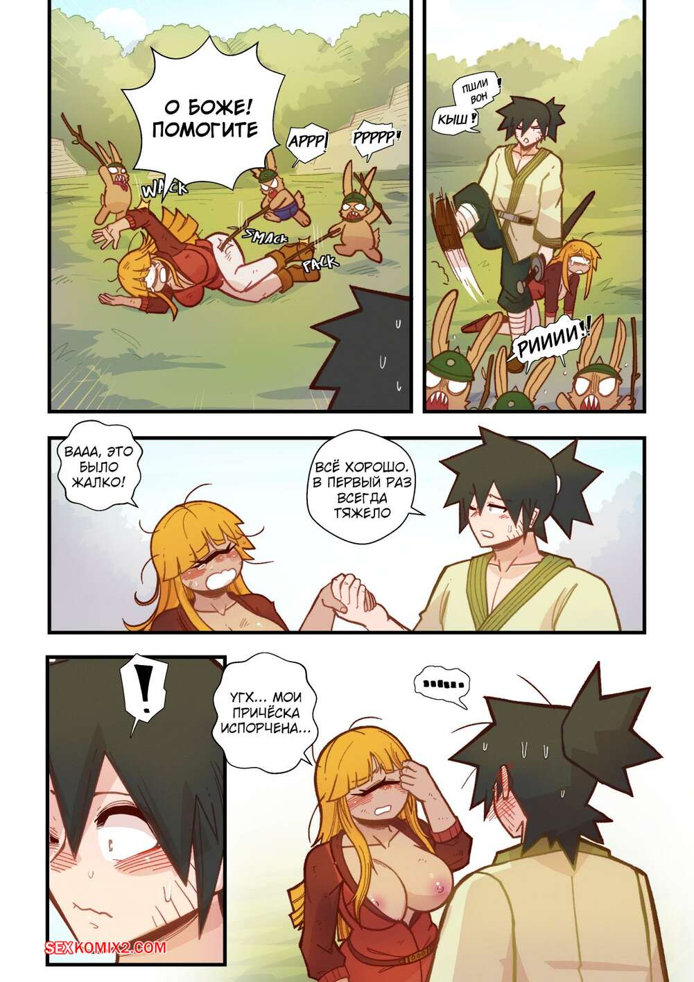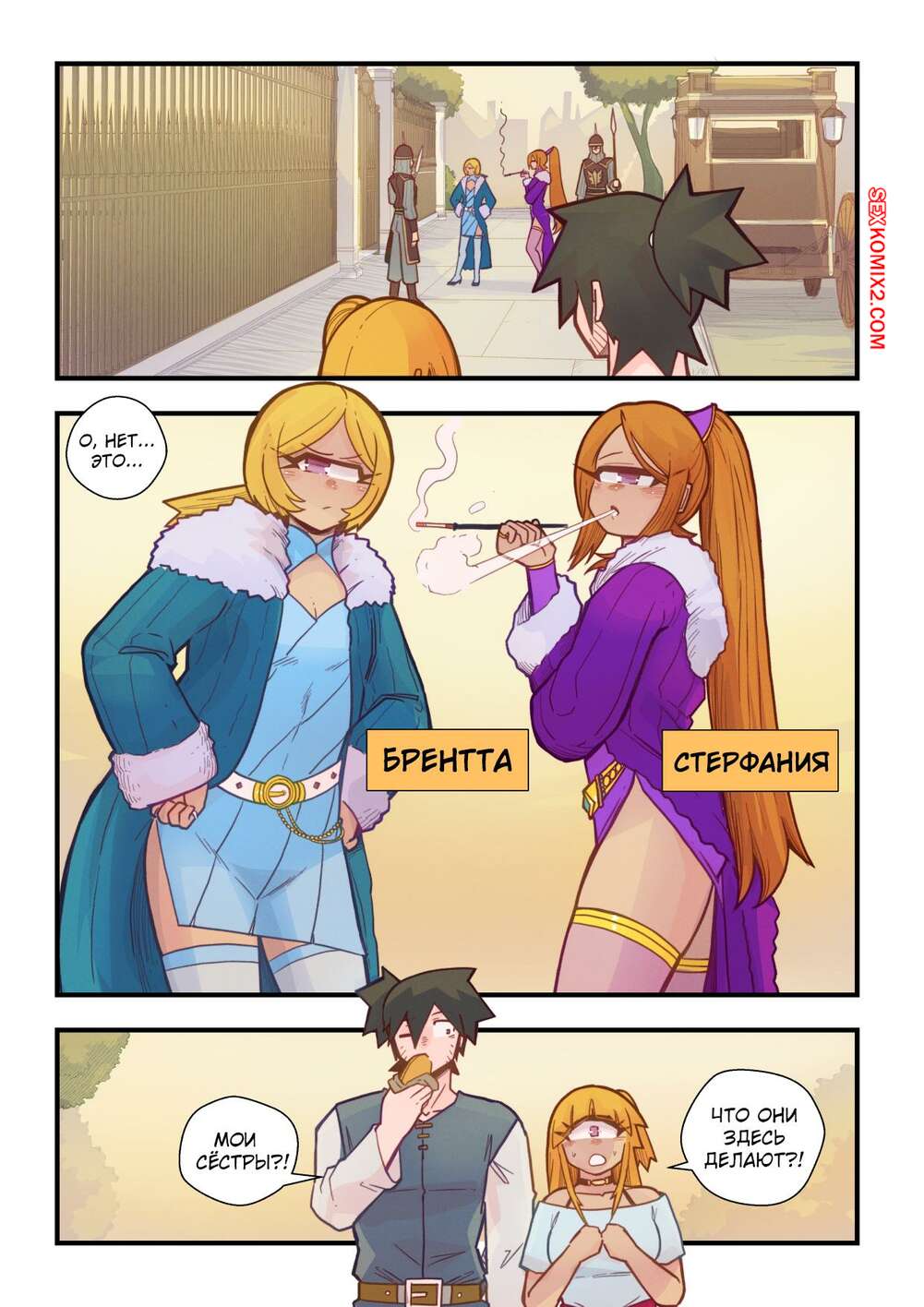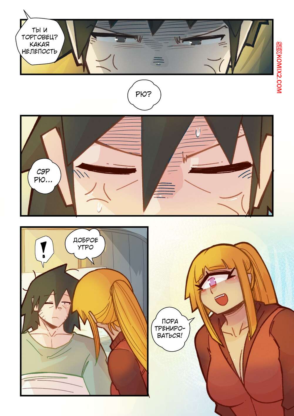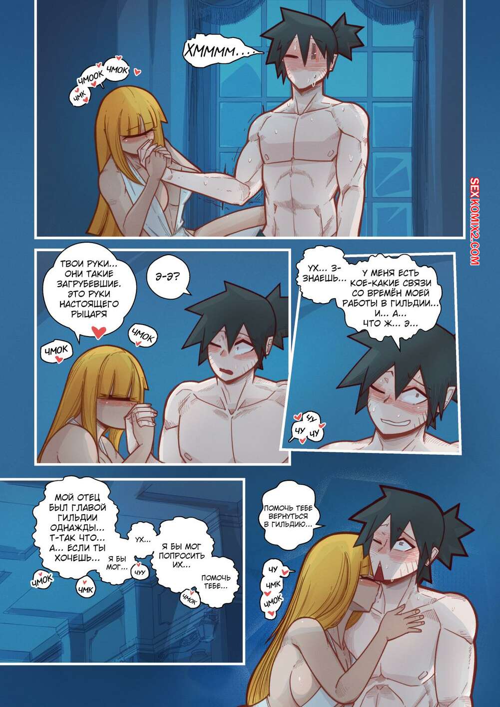 Порно комикс Ванильная фантазия. Часть 5. Vanilla Fantasy. Mr.E. В своих странствиях парень познакомился с одноглазой девушкой, она стала его оруженосцем. Со временем он влюбился в нее, после жаркой ночи секса они стали парой.