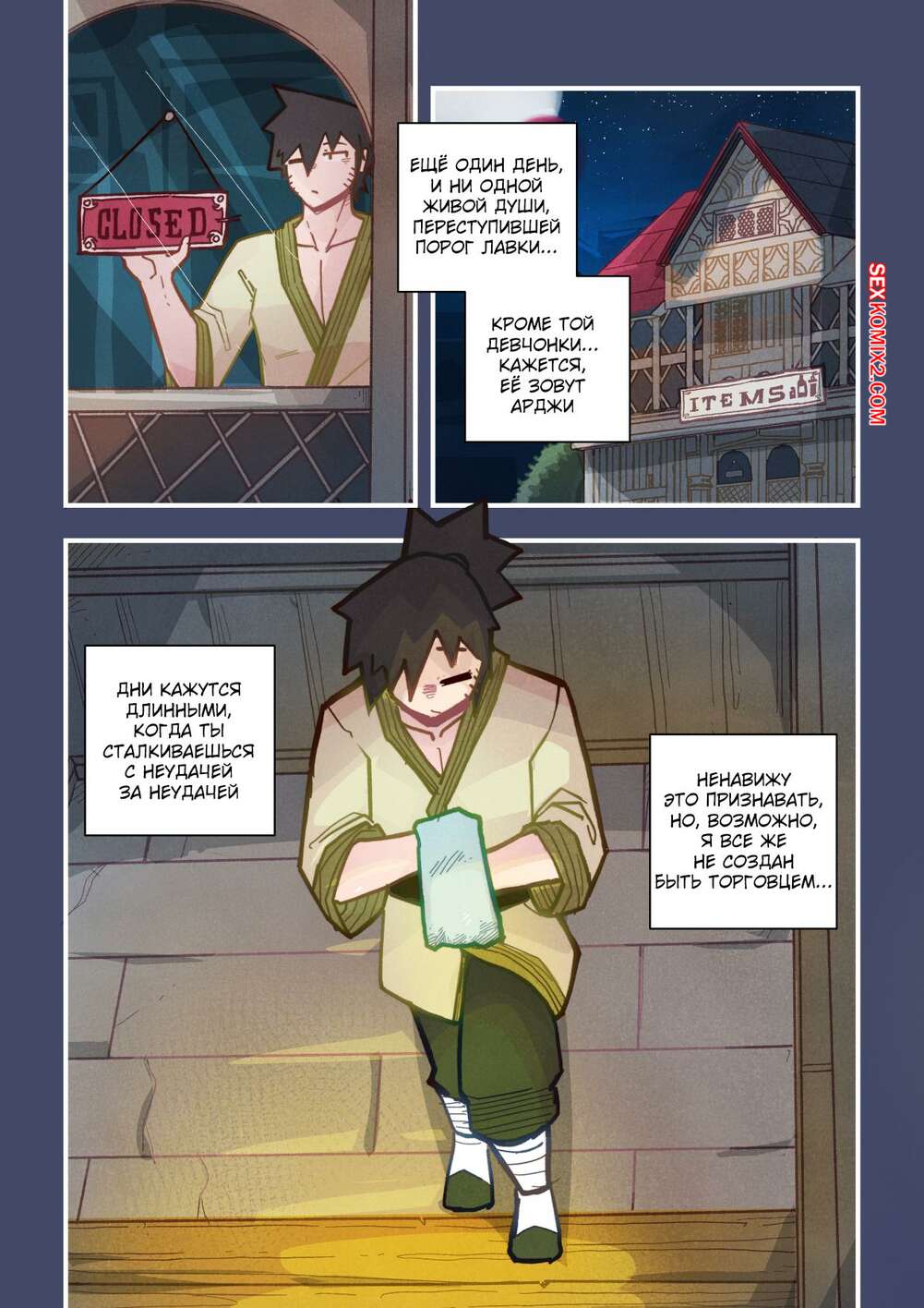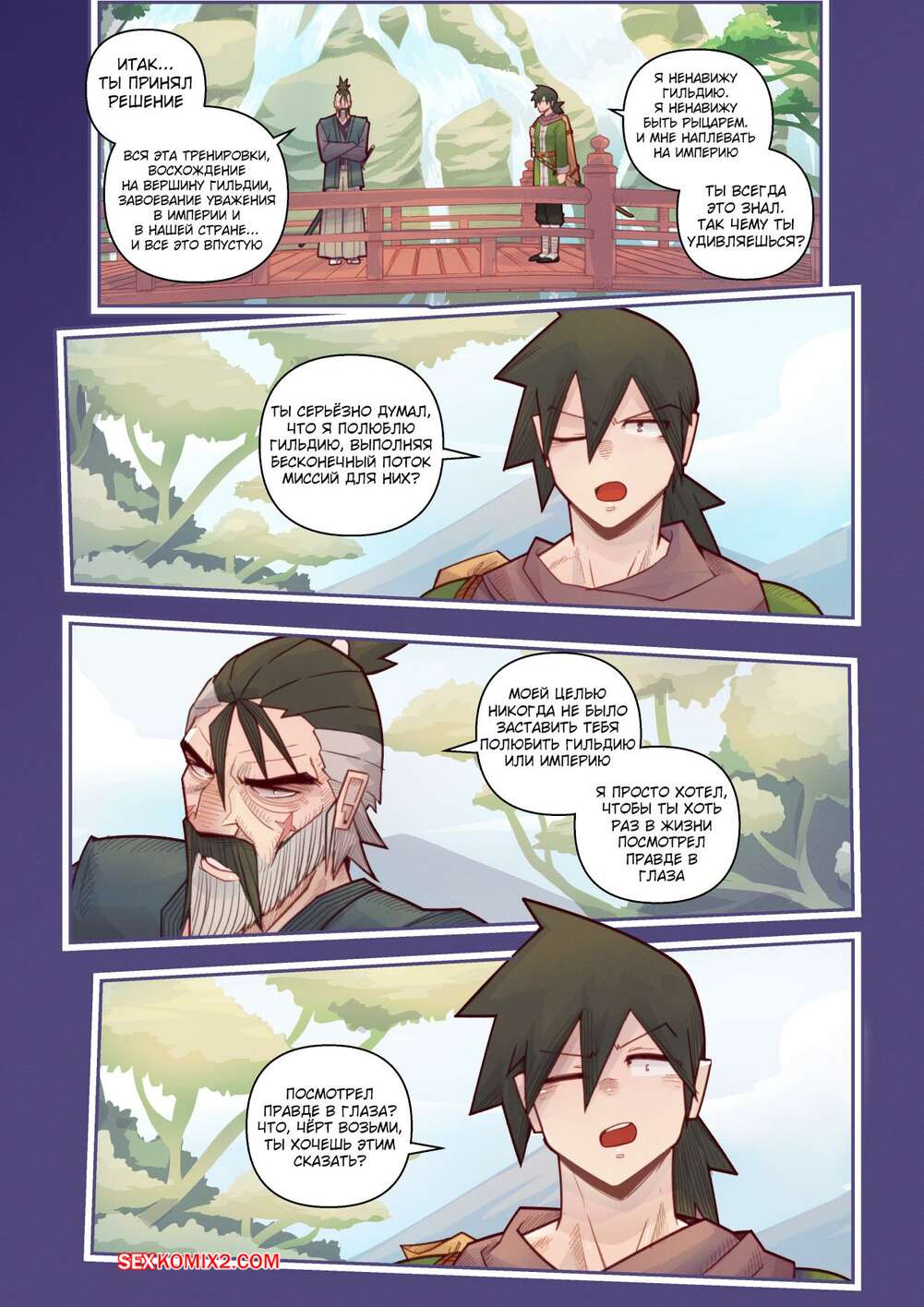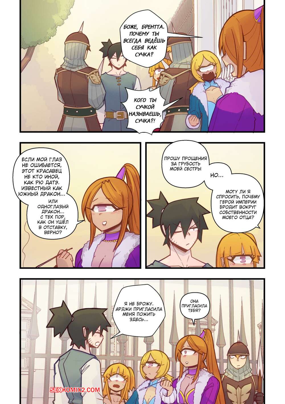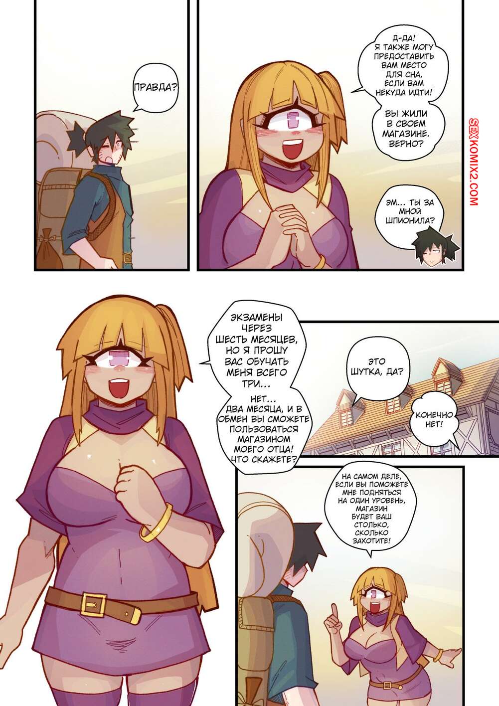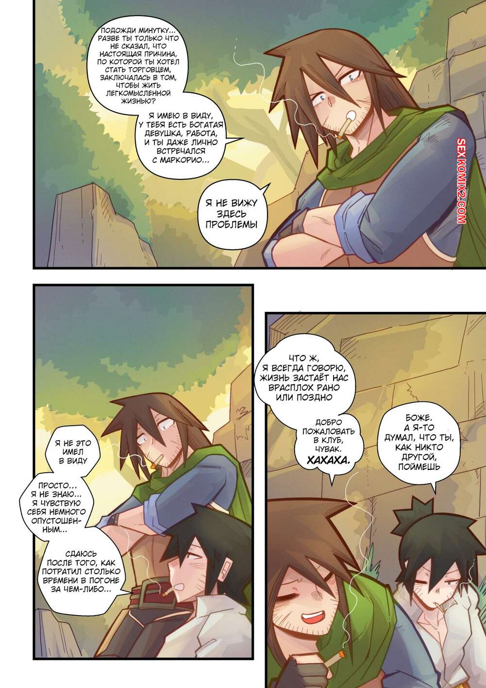 Порно комикс Ванильная фантазия. Часть 5. Vanilla Fantasy. Mr.E. В своих странствиях парень познакомился с одноглазой девушкой, она стала его оруженосцем. Со временем он влюбился в нее, после жаркой ночи секса они стали парой.