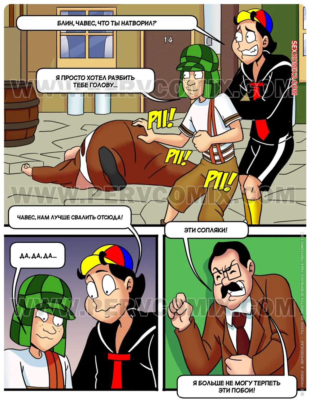 Порно комикс Чавиньо. Часть 9. Chavetoons. PervComix. Соседу прилетело от парней из соседней квартиры, он решил напугать ночью, оделся как приведение и пошел к ним. Но дома была мать одного из них голая, она только вышла из душа.