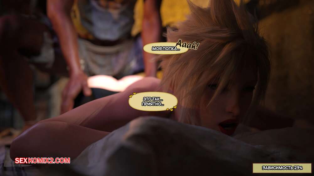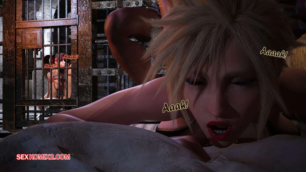 Порно комикс Final Fantasy. Тифа неторарэ. Часть 9. Tifa NTR. Scyxar Studios Стражник пробрался в камеру к спящей блондиночке, желая воспользоваться моментом по полной. Он вставил член в пизденку девушки и стал ее трахать, пока его коллега давал в рот брюнеточке.