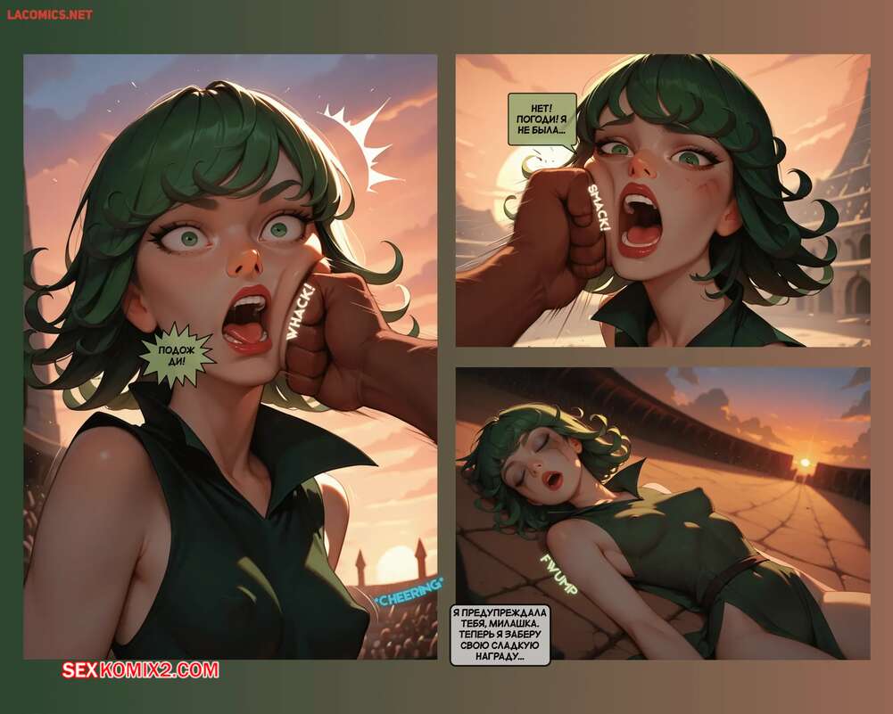Порно комикс One Punch Man. Крученая дуэль. Twisted Duel Горячая красотка ждала парня у арены для дуэли, но он задержался на целый час. Застав девушку врасплох, парень вырубил противницу, после чего забрал ее к себе домой, чтобы получить награду за победу.