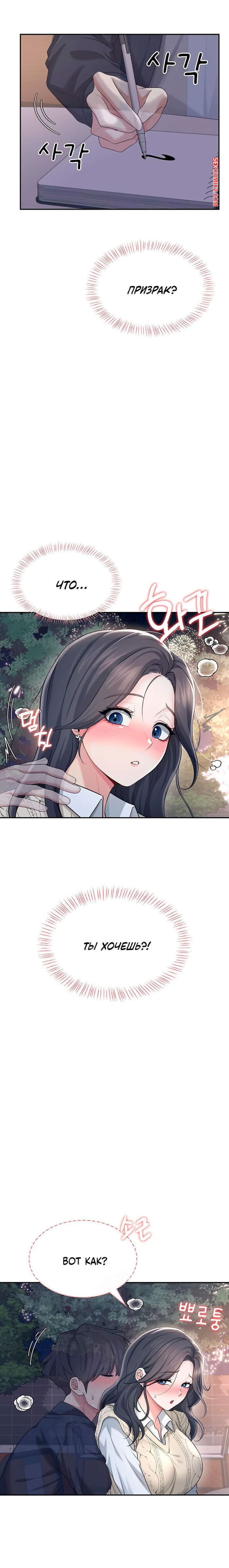 Порно комикс Беспроводной мастурбатор. Часть 28 и 29 и 30. museon yeongial onahole Горячая брюнетка испытывает возбуждение на уроке и желает секса. После занятий красотка спешит на встречу с парнем призраком и раздвигает ножки, чтобы он ее как следует выебал.
