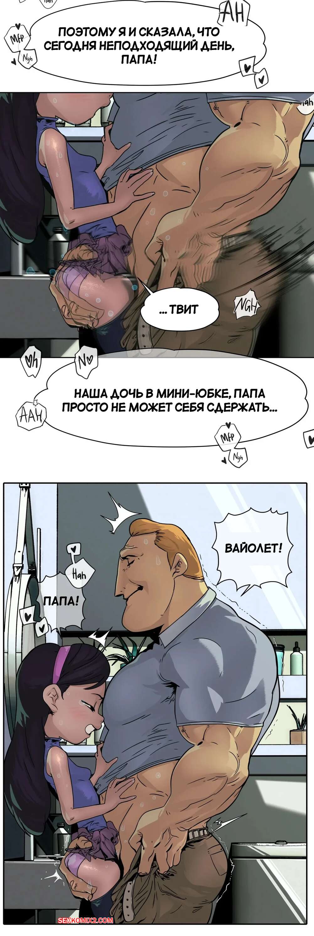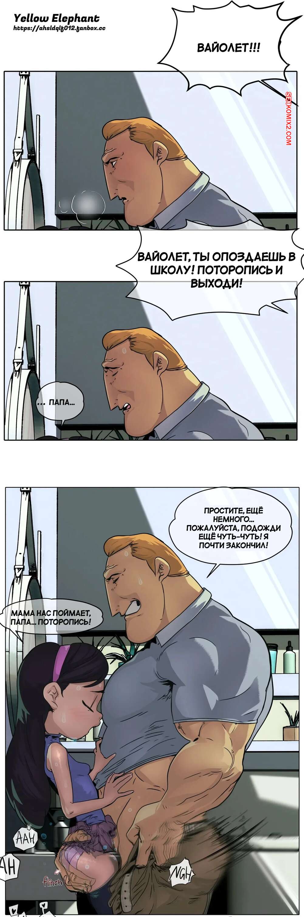 Порно комикс Суперсемейка. Вайолет Парр с отцом. Violet Parr with dad. yellow elephant. Мистер Исключительный давно не трахался с Эластикой, поэтому перевел свой взгляд на любимую дочь. Они добивается с ней уединения и хорошенько трахает узкую пизденку дочери.