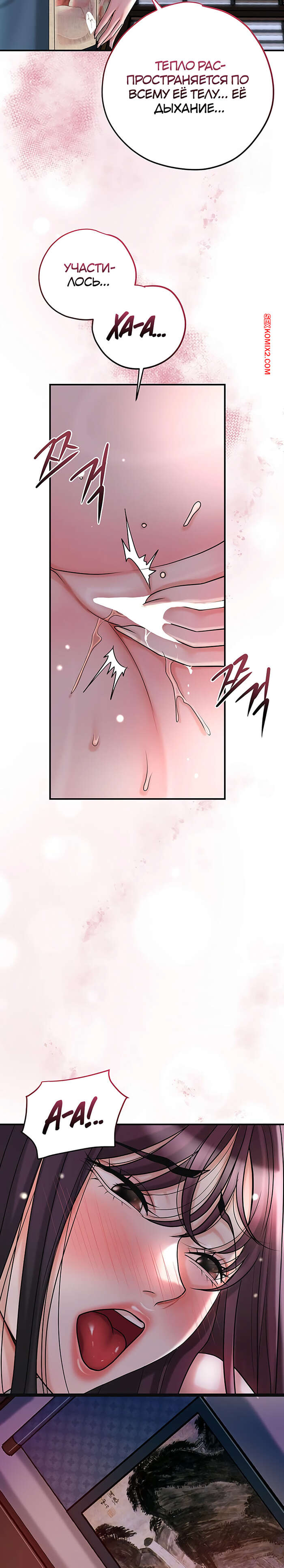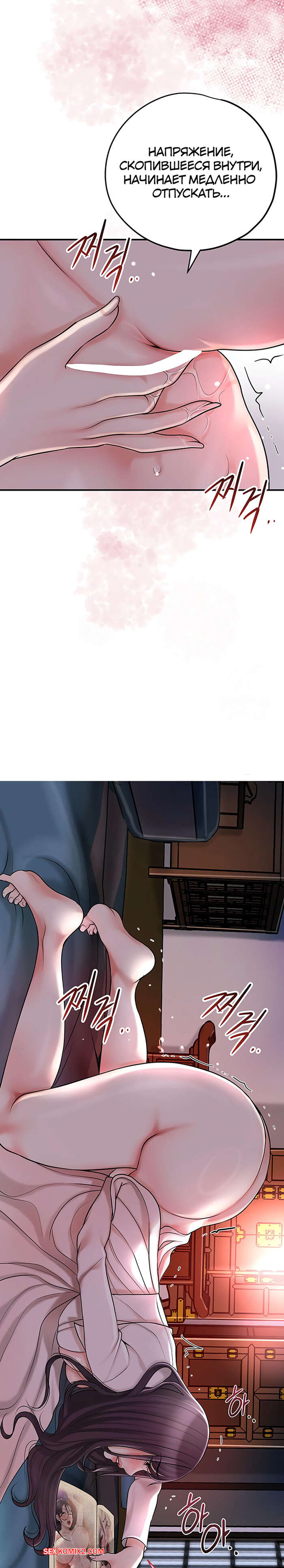 Порно комикс Бордель. Часть 44 и 45 и 46. chwihwajeom Красотка вспомнила свой секс с парнем и очень возбудилась. Она легла на кровать и сняла трусики, после чего стала ласкать пальчиками пизденку, получая один оргазм за другим.