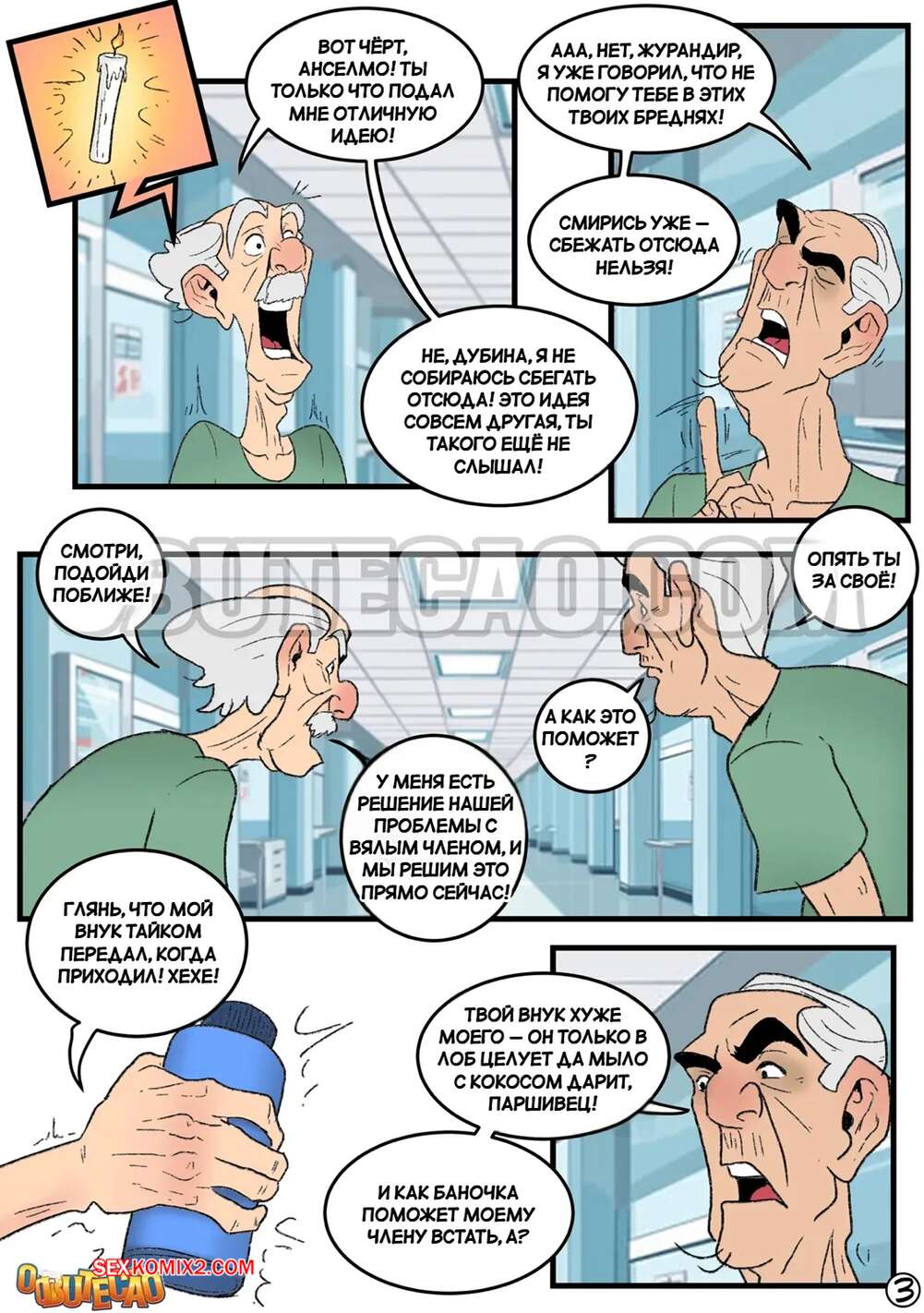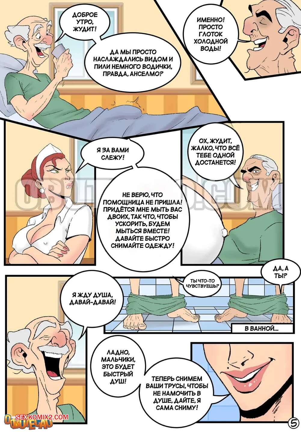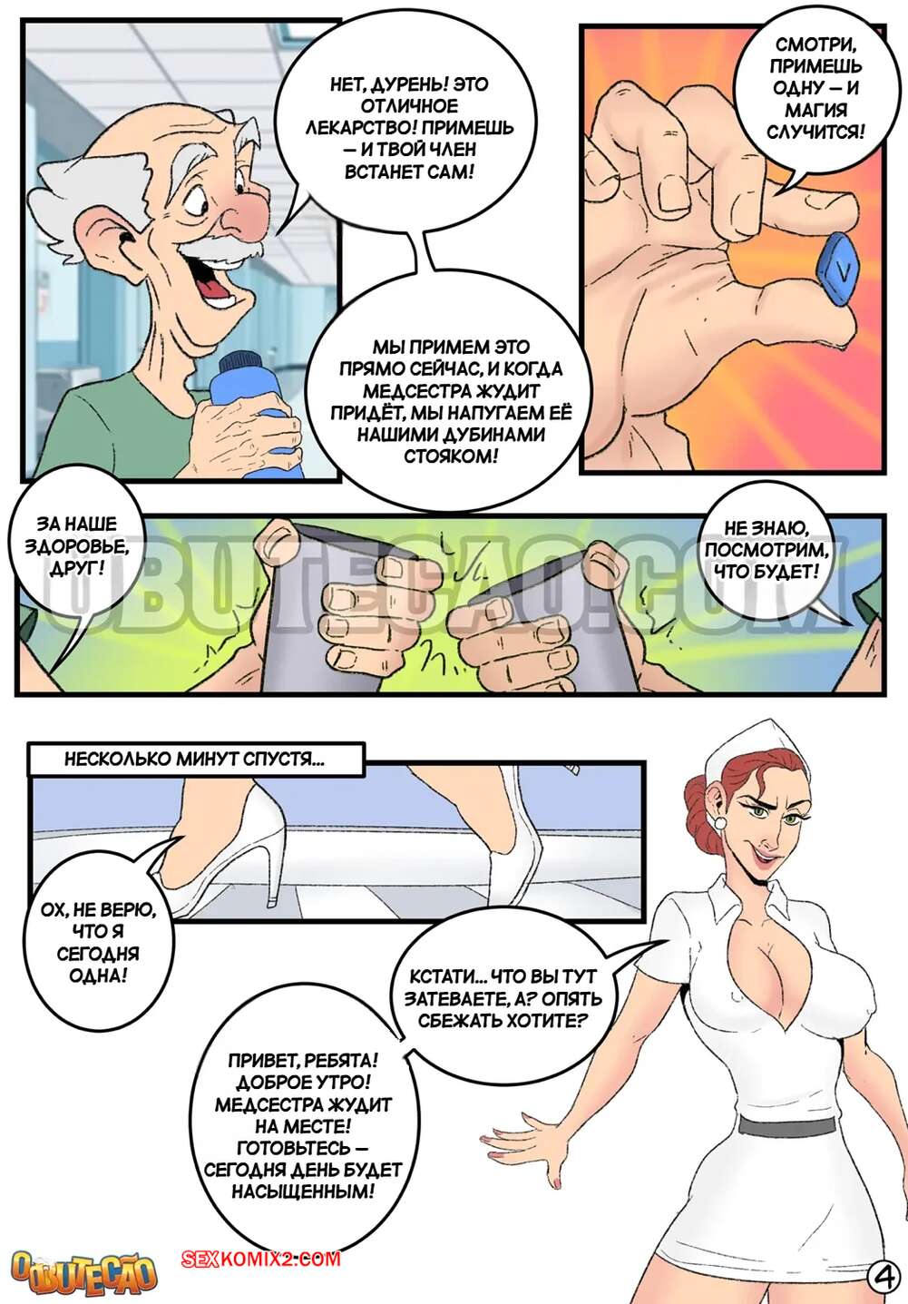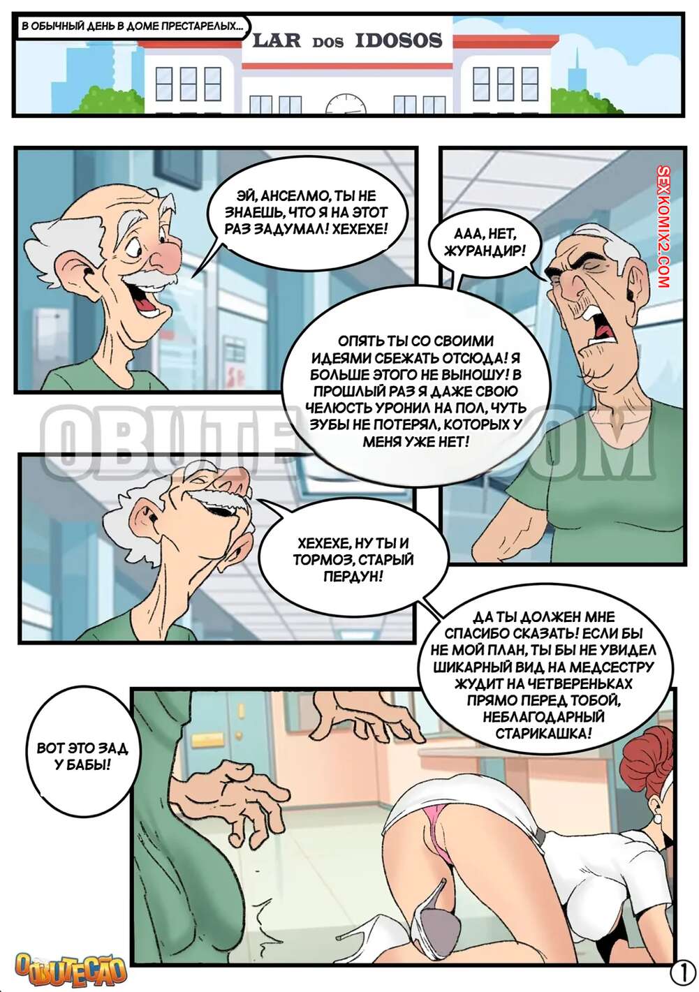 Порно комикс Сиделка и извращенные старики. A cuidadora e os velhinhos tarados. O Butecao Горячая медсестра пришла в палату, чтобы искупать двух стариков. Когда они разделись, перед девушкой оказались два огромных хуя. Она не устояла перед соблазном и стала сосать старикам, после чего они выебали ее во все щели.