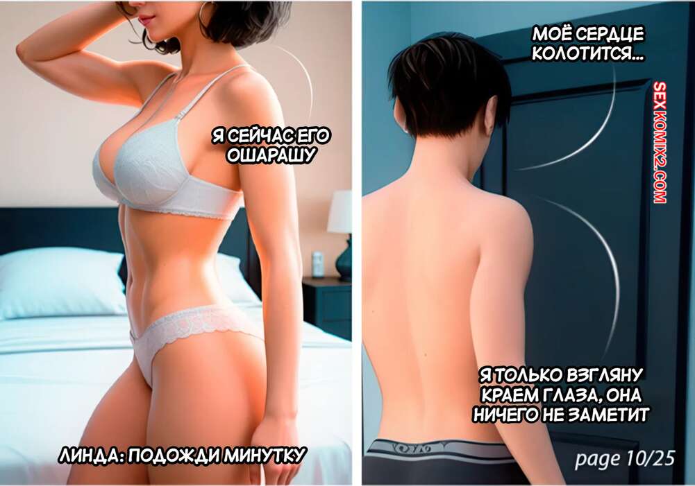 Порно комикс Материнские насмешки. Часть 1. Mothers Tease. Lucozade. Горячая милфа скучала дома и решила немного развлечься. Она позвала сына к себе в комнату и надела для него сексуальное черное белье. Парень быстро возбудился и красотка достала его член, чтобы помочь ему кончить.