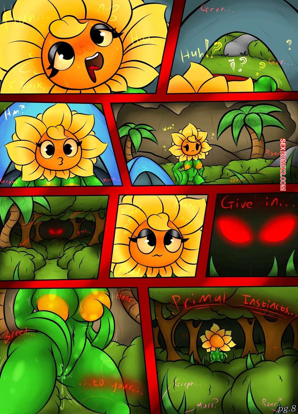 Порно комикс Plants vs. Zombies. Primal Instincts. BlobSlimey Девушка блондинка пошла искупаться в озере и вернулась в свою пещеру, чтобы поспать. Она обнаружила у себя под одеялом дружка, который стал вылизывать влажную дырочку подруги.