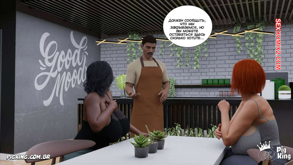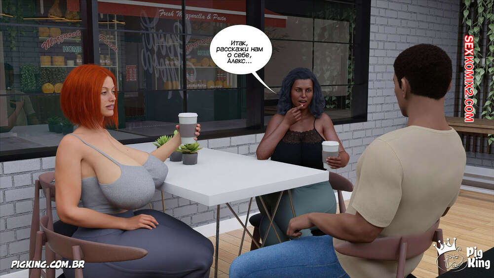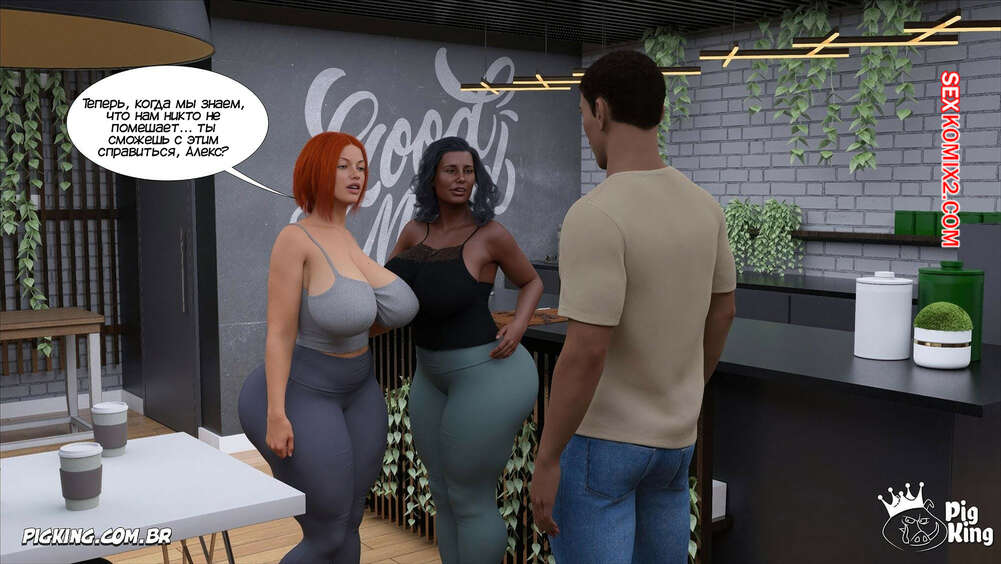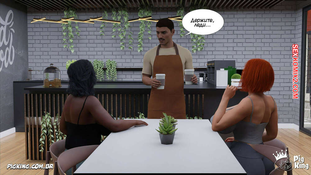 Порно комикс Большой черный член. Часть 28. Big Black Cocks. CrazyDad3D Эвелина и Грейс отправились в кафе, чтобы обсудить свои подозрения по поводу измен мужей. Красотки положили глаз на симпатичного официанта, поэтому они решили воспользоваться ситуацией и стали его соблазнять.