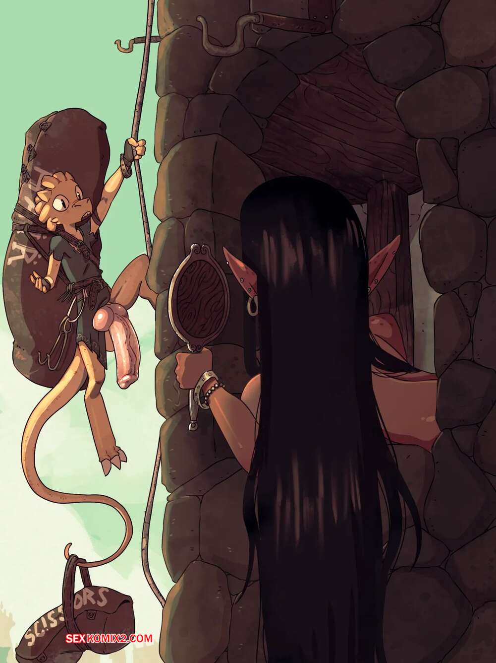 Порно комикс Девичьи волосы. Damsel Hair. Rapscallion. Девушки закрыты в высоких башнях и очень хотят секса. Им в окно передают разные секс игрушки, чтобы они могли себя удовлетворять и хоть както кончать.