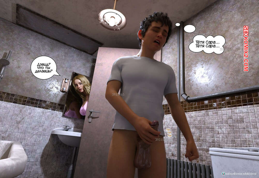 Порно комикс Вместе. Часть 11. Together. Daval3D Дэвид спал и ему приснился сон с его любимой тетей Сарой. Красотка села ему на кровать в одних лишь трусиках, но сон быстро закончился, и парень проснулся от того, что кончил в трусы.