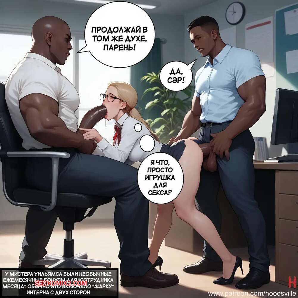 Порно комикс Офис. The Office. Hoodsville Горячая блондинка милфа работает в офисе с темнокожими парнями. Они пользуются телом девушки и дают ей глубоко заглотить свои члены, после чего трахают ее для раслабления.