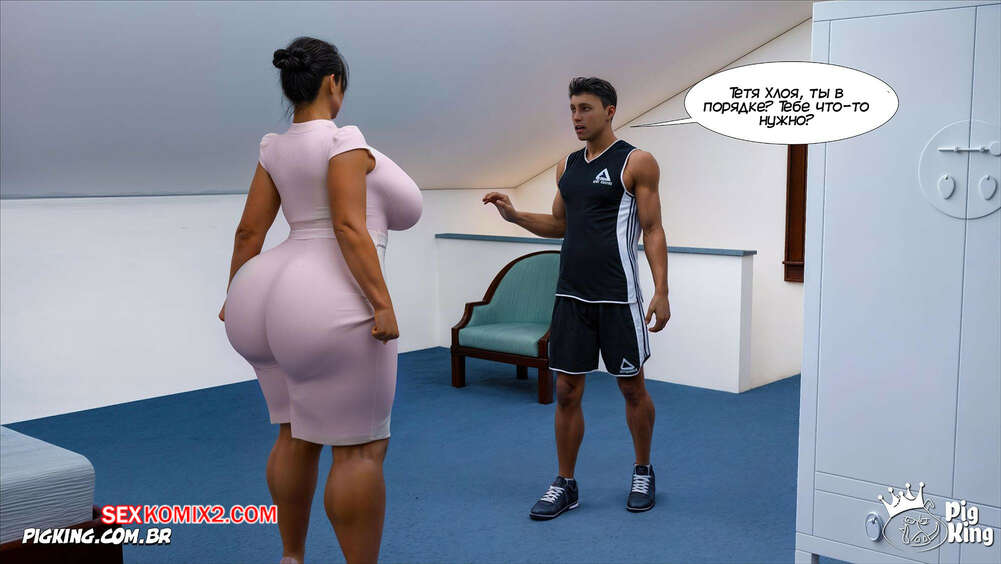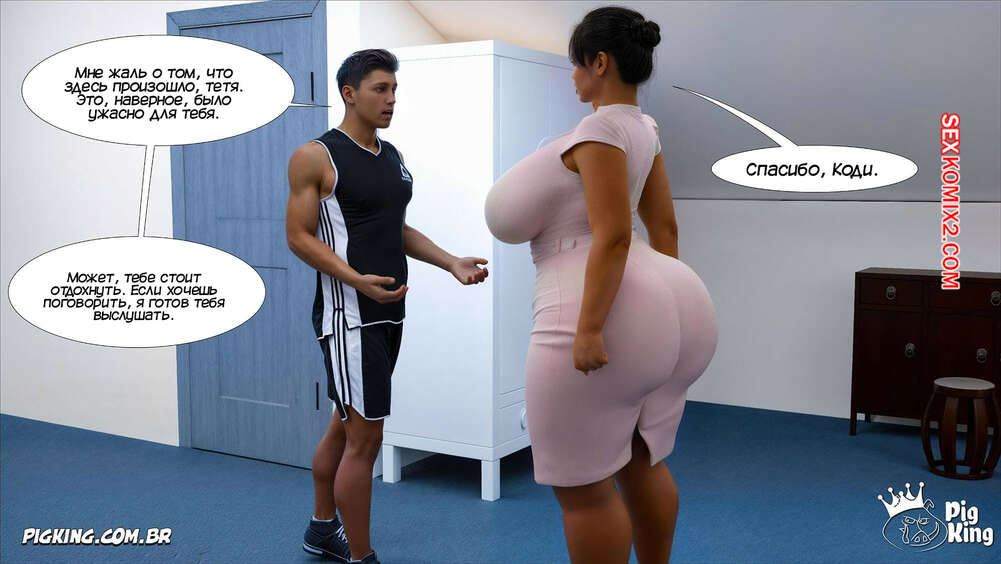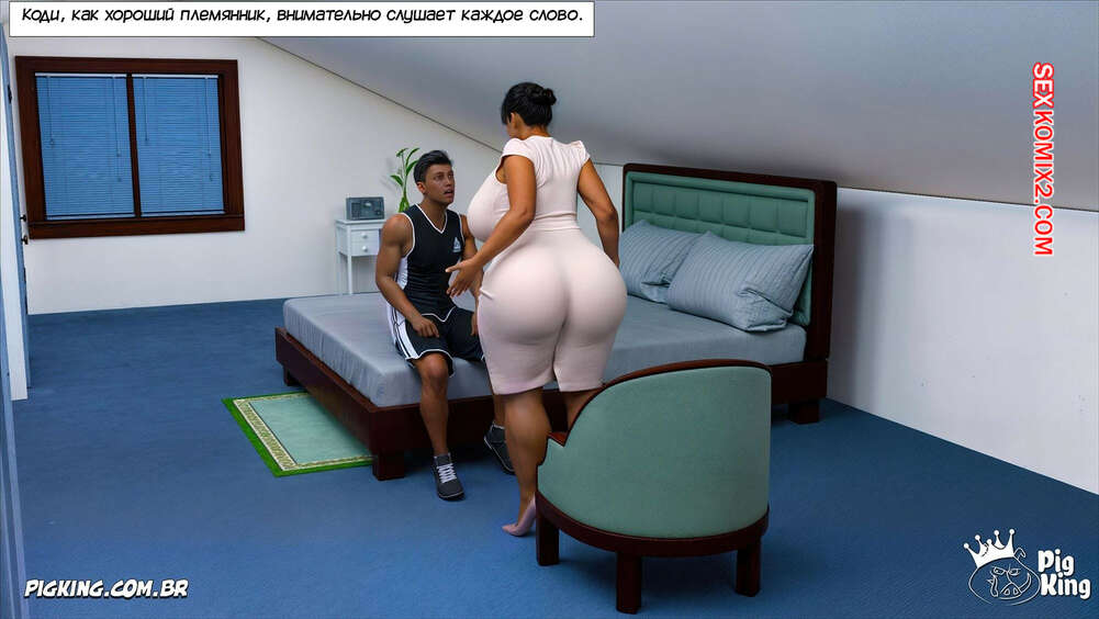 Порно комикс Запретное желание. Часть 34. Forbidden Desire. CrazyDad3D Хлоя застала своего мужа за изменой и прогнала его. Коди решает воспользоваться уязвимостью горячей тетушки и начинает ее соблазнять, желая склонить красотку к сексу.