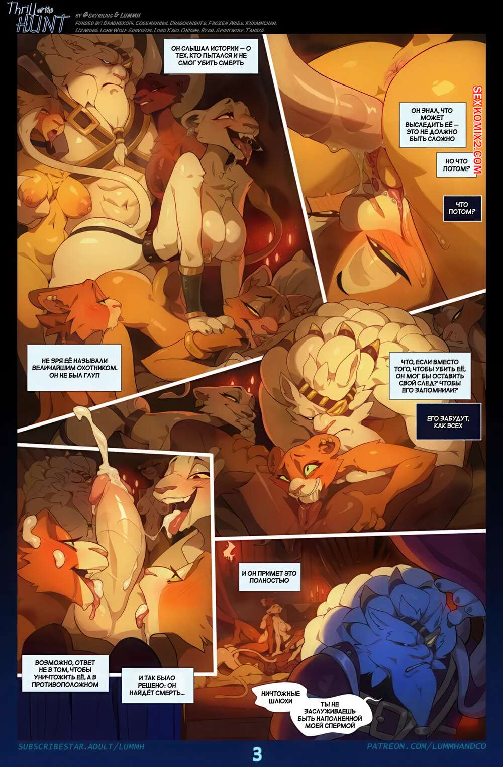 Порно комикс Охота за острыми ощущениями. Thrill of the Hunt. Lummh, SkyriLius. Девушки фурри желают ублажить своего правителя. Красотки встают на колени перед ним и сосут его большой хуй, после чего встают раком и дают себя по очереди выебать.
