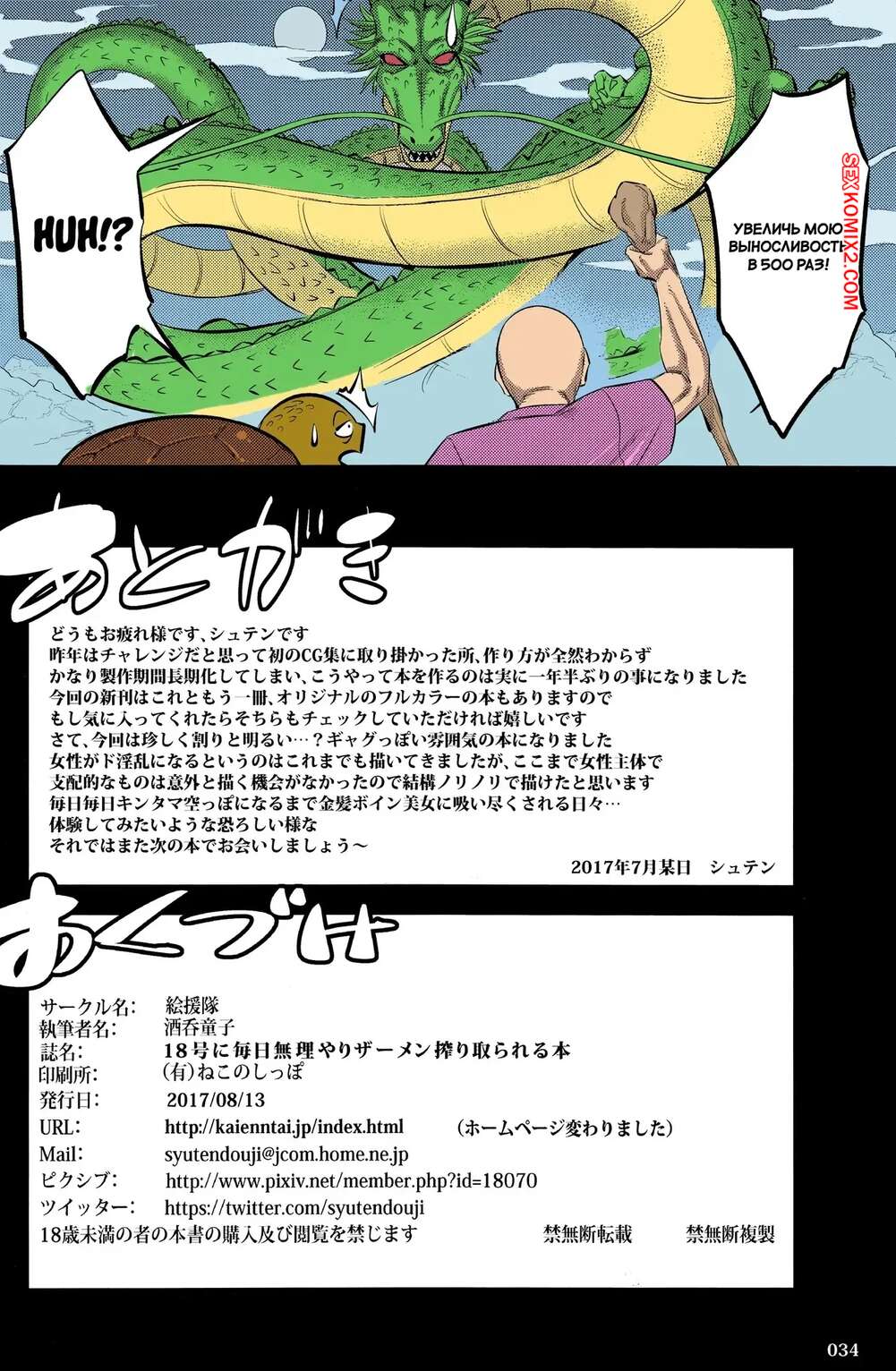 Порно комикс Dragon Ball. 18 насильно выжимает из тебя сперму. Kaientai Андроид 18 набрасывается на старика Роши, желая получить его горячую сперму. Красотка срывает с себя одежду и седлает хуй седого мужика, после чего скачет на нем изо всех сил, заставляя его кончить поскорее.