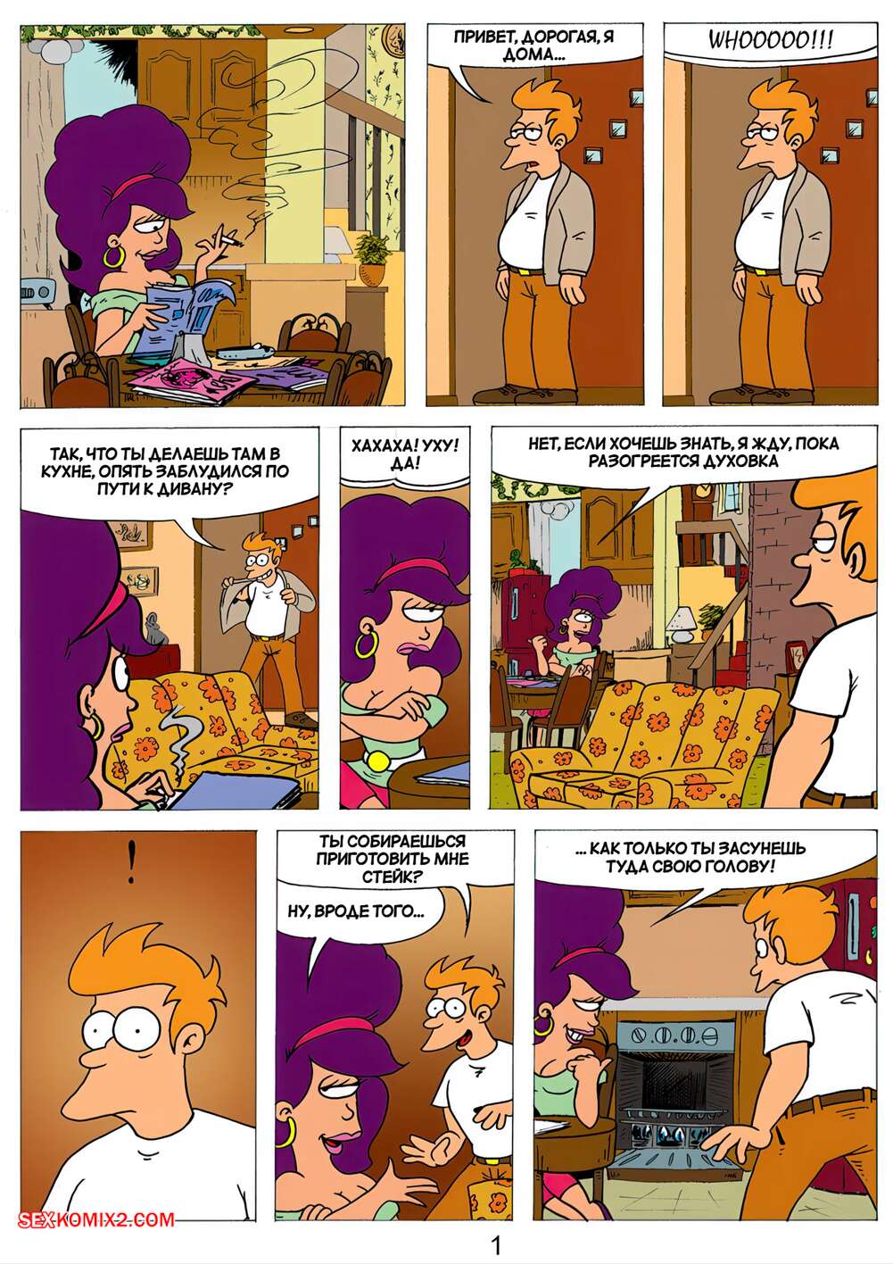 Порно комикс Футурама. Любовь и брак. Short Fancomics. Pieter Antonissen. Красотка надела платье, в котором выглядела очень сексуально, и это привлекло внимание Фрая. Девушка заметила на себе похотливые взгляды парня и предложила ему трахнуться.