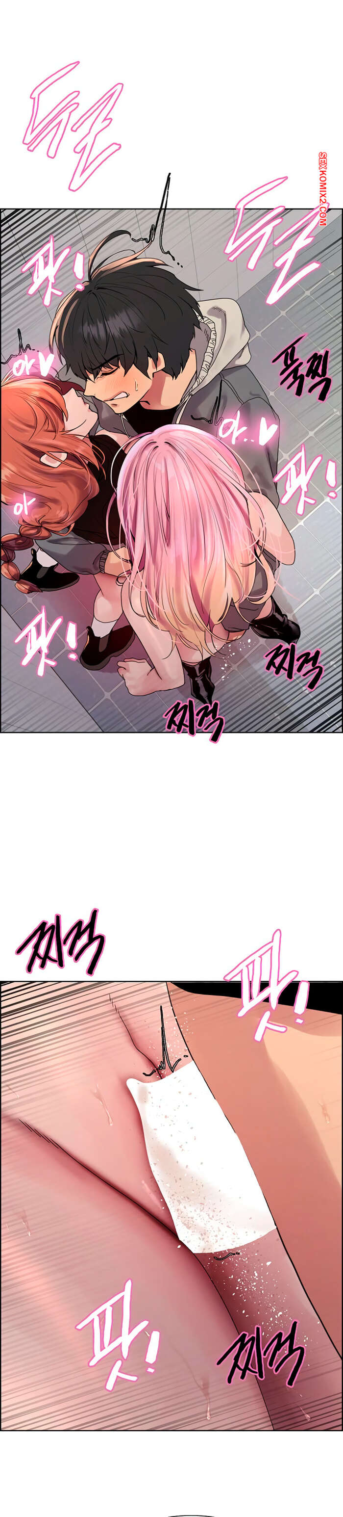 Порно комикс Секс Часы. Части 143 и 144 и 145. Второй сезон. Sex Stop Watch Парень дает красотке отсосать свой член, после чего ставит ее раком и хорошенько трахает. Их за этим делом спалила брюнеточка, которая возбудилась и присоединилась к ебле.