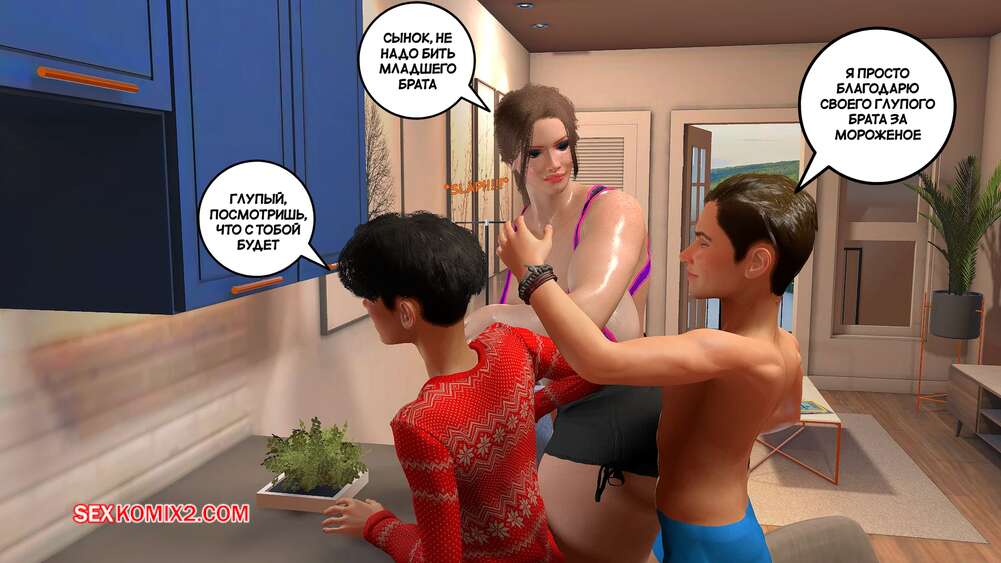 Порно комикс Предпочтения матери. Часть 2. Preferencias de una madre. Bartolito3d by sexkomix2.com Горячая милфа растроилась изза ссоры своих сыновей, и один из парней решил утешить мамочку, поведя ее в спальню. Там он уложил ее на кровать и вставил в нее свой член, чтобы как следует трахнуть ее.
