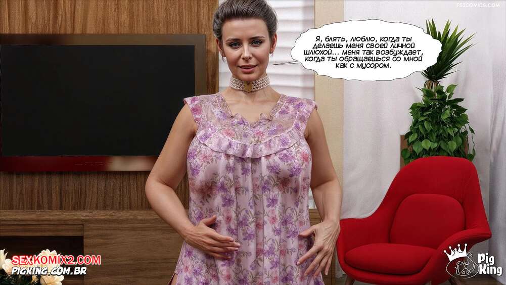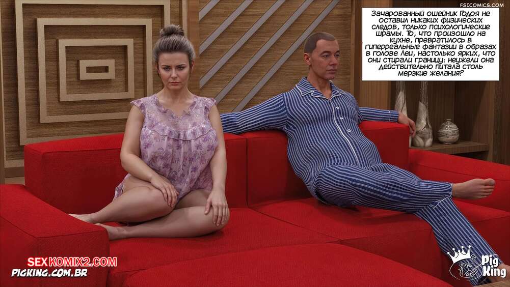 Порно комикс Ошейник. Часть 2. The Collar. PigKing Годой вновь застает мамочку врасплох и надевает на нее ошейник. Красотка начинается подчиняться сыну и он снимает с нее трусики, чтобы отлизать ее пизденку, доставляя ей оргазм.