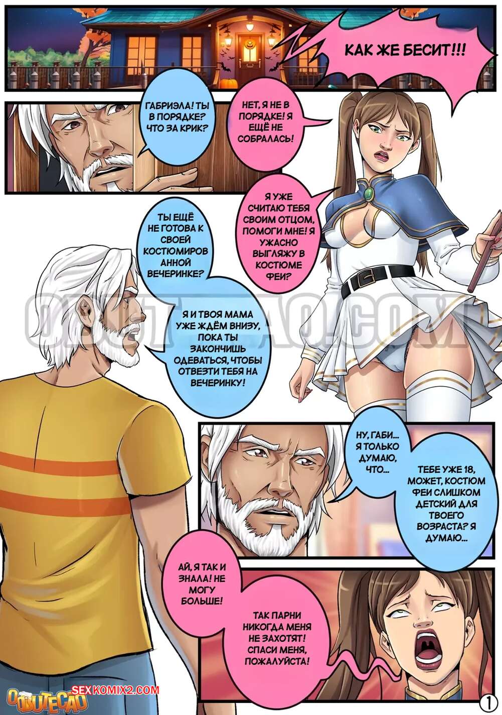 Порно комикс Ночь Хэллоуина с отчимом. Uma noite de Halloween com meu padrasto. O Butecao Красотка торопилась на вечеринку в честь Хэллоуина и решила переодеться в присутствии отчима. При виде попки девушки у него возник стояк, и девушка это быстро заметила. Она решила пошалить и отсосала мужику, после чего дала ему себя выебать и кончить в нее.