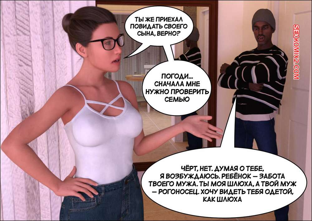 Порно комикс Групповуха с шлюхой женой. Часть 2. Slutwife Gangbang. Mature3DComics Горячая брюнетка хочет трахаться, поэтому передает детей на опеку своему мужу, а сама приглашает к себе темнокожих парней и уединяется с ними в спальне. Сучка раздевается и раздвигает ножки, после чего дает себя выебать во все щели.