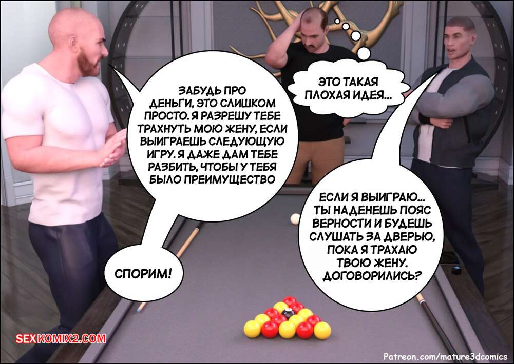 Порно комикс Договор есть договор. A Bets A Bet. Mature3DComics. Парень проиграл в бильярд своему другу и теперь должен ему. Он приводит победителя к себе домой и позволяет ему уединиться в спальне со своей женой, чтобы она дала ему трахнуть себя во все дырочки.