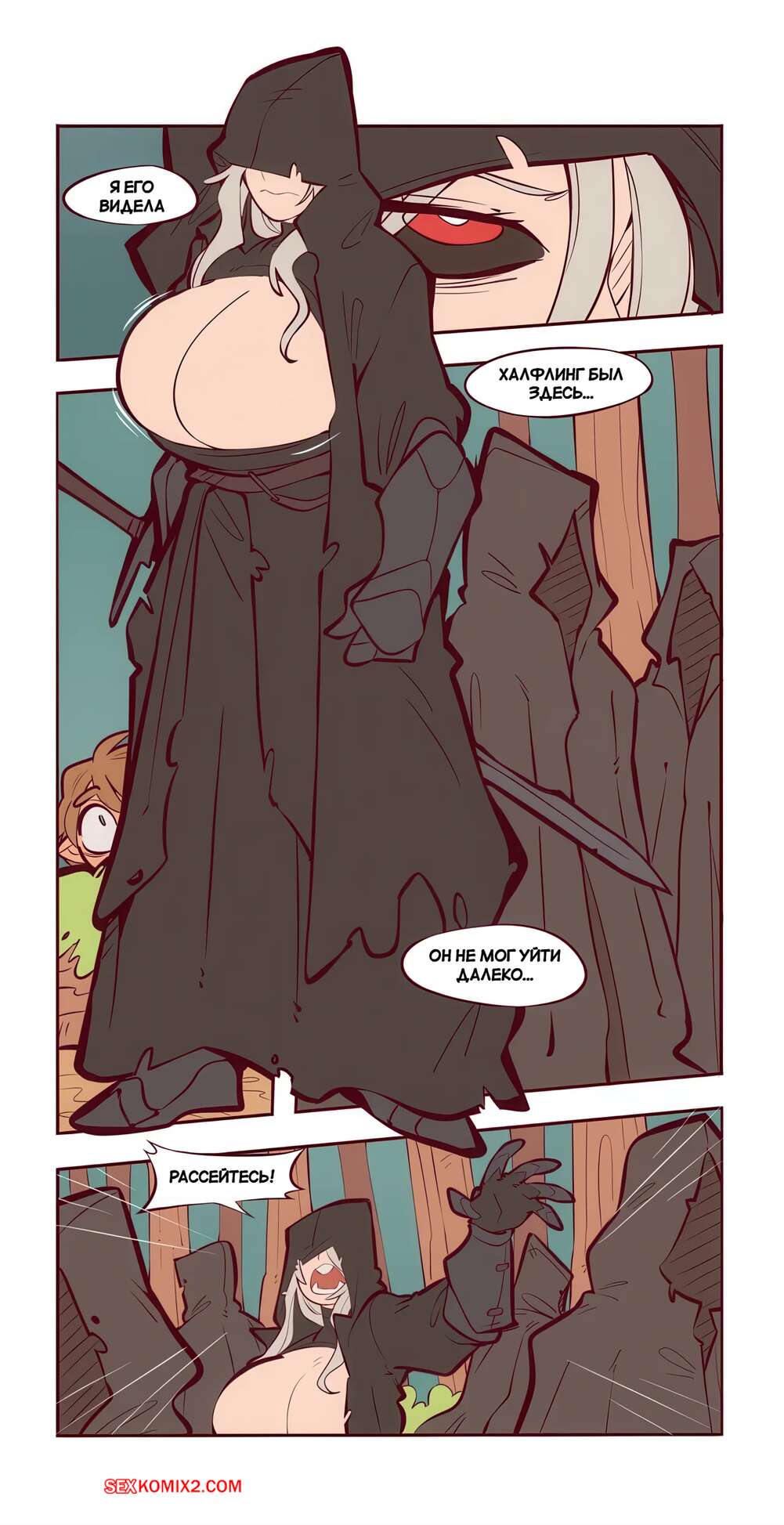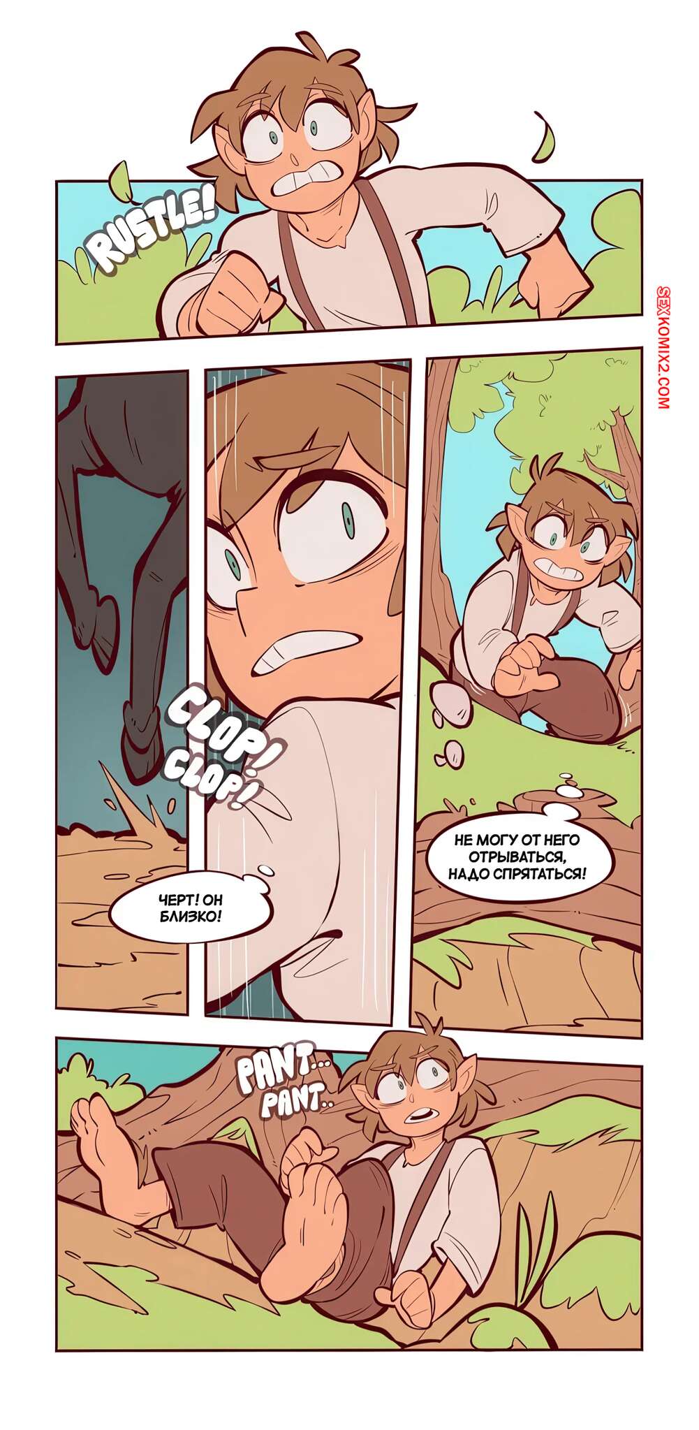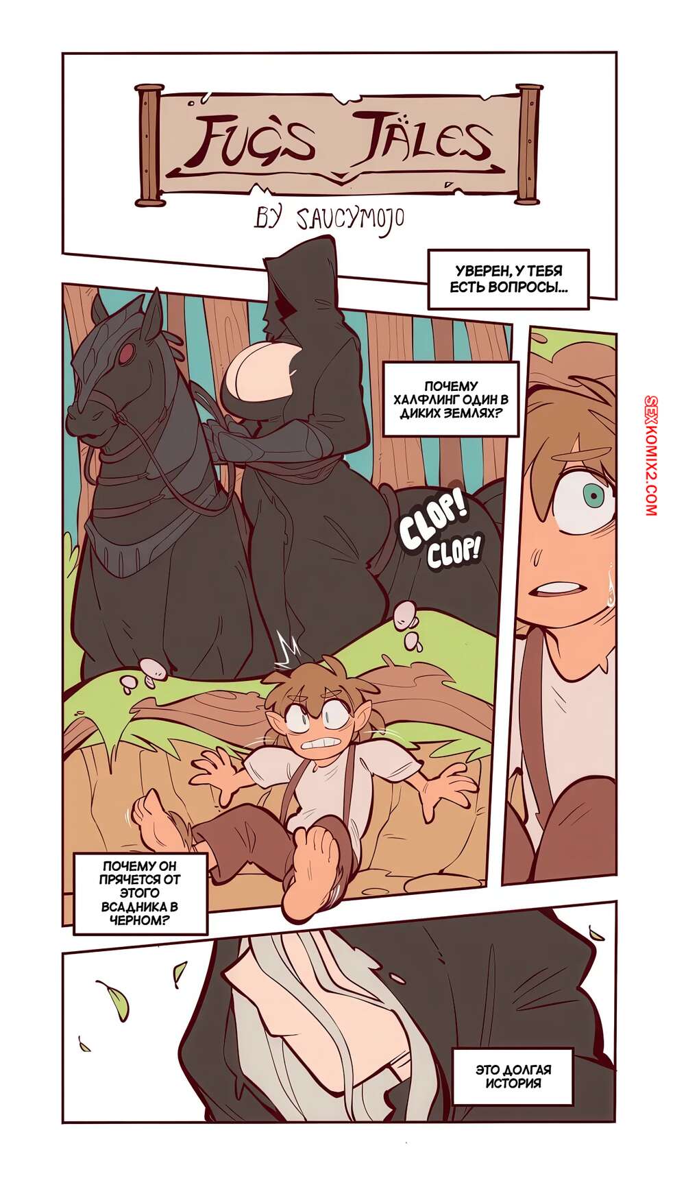 Порно комикс Сказки Фуга. Fugs Tales. SaucyMojo. Парнишка спокойно прогуливался возле лес и наткнулся на девушку в черном плаще верхом на коне. Он стал убегать от красотки, а она начала его преследовать, привлекая внимание парня своими огромными сиськами.