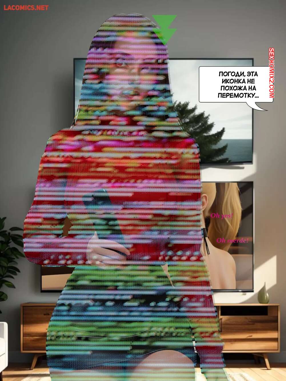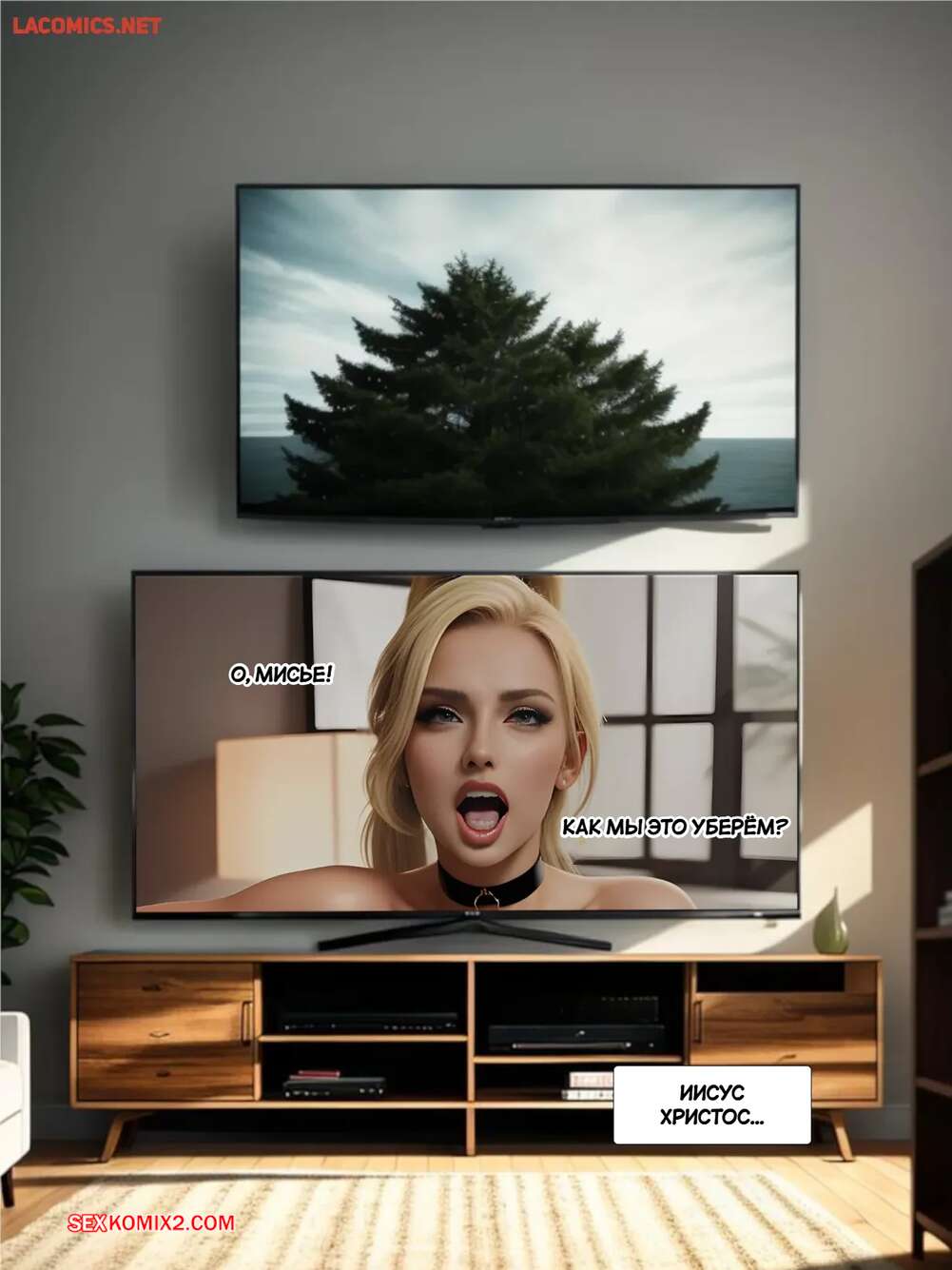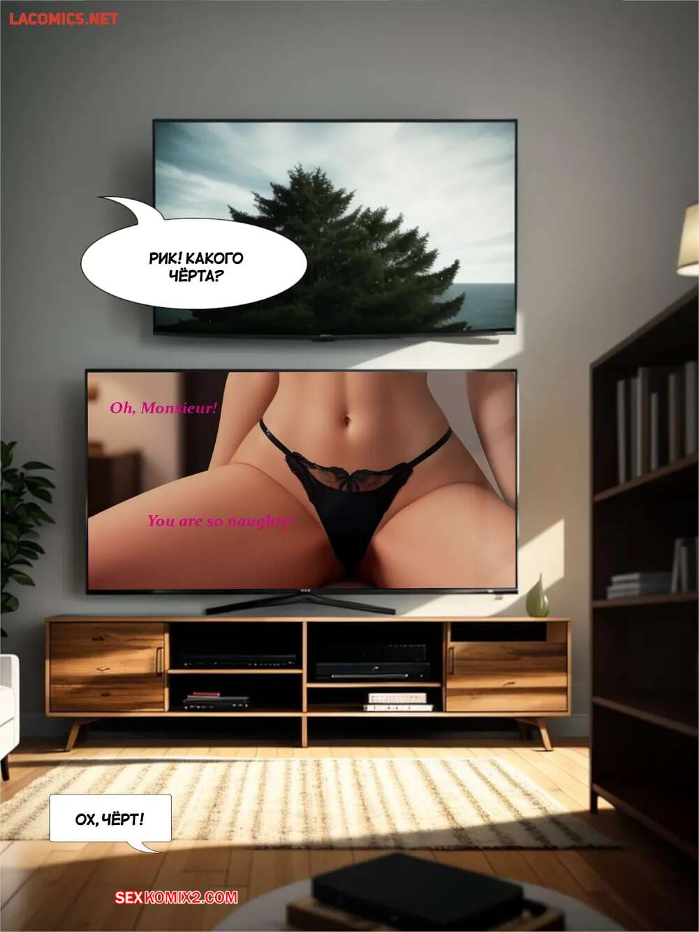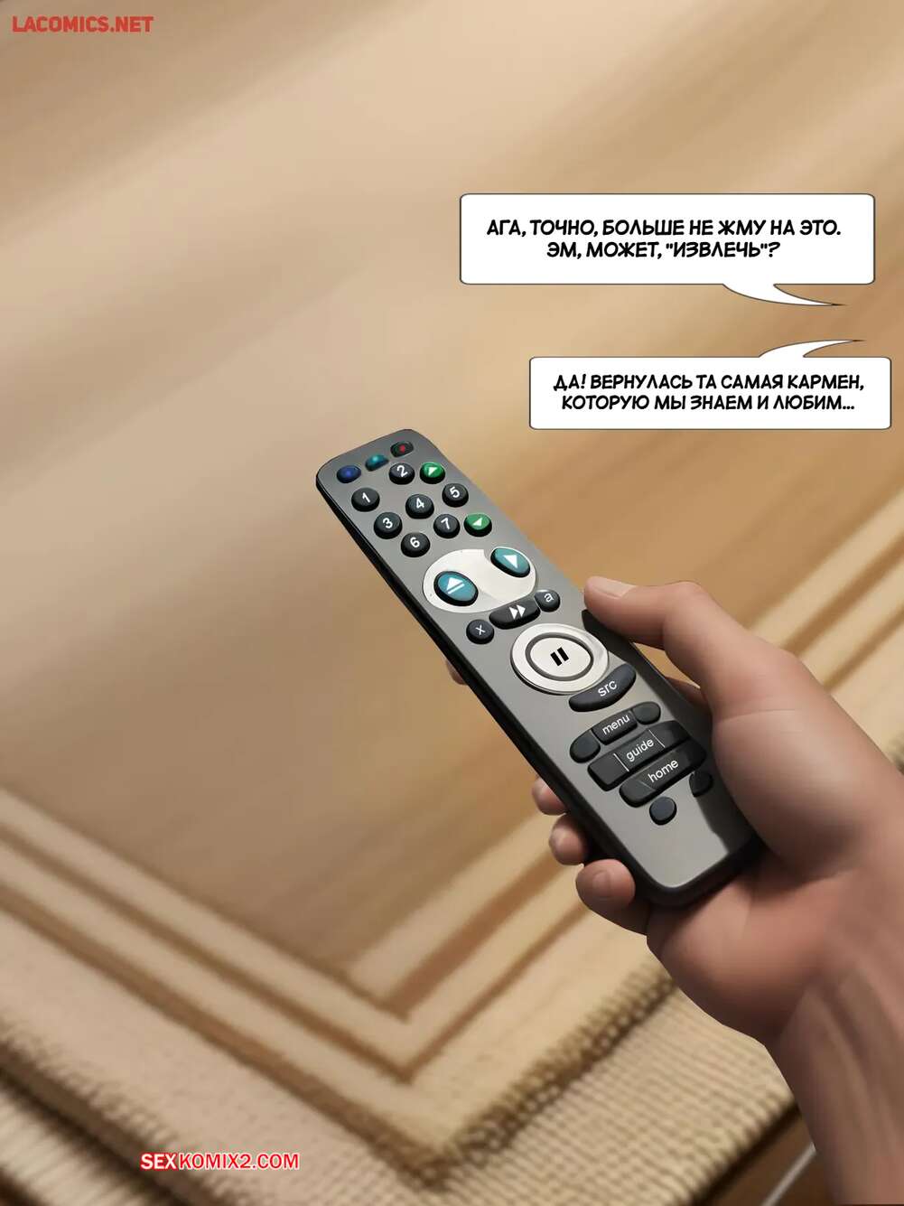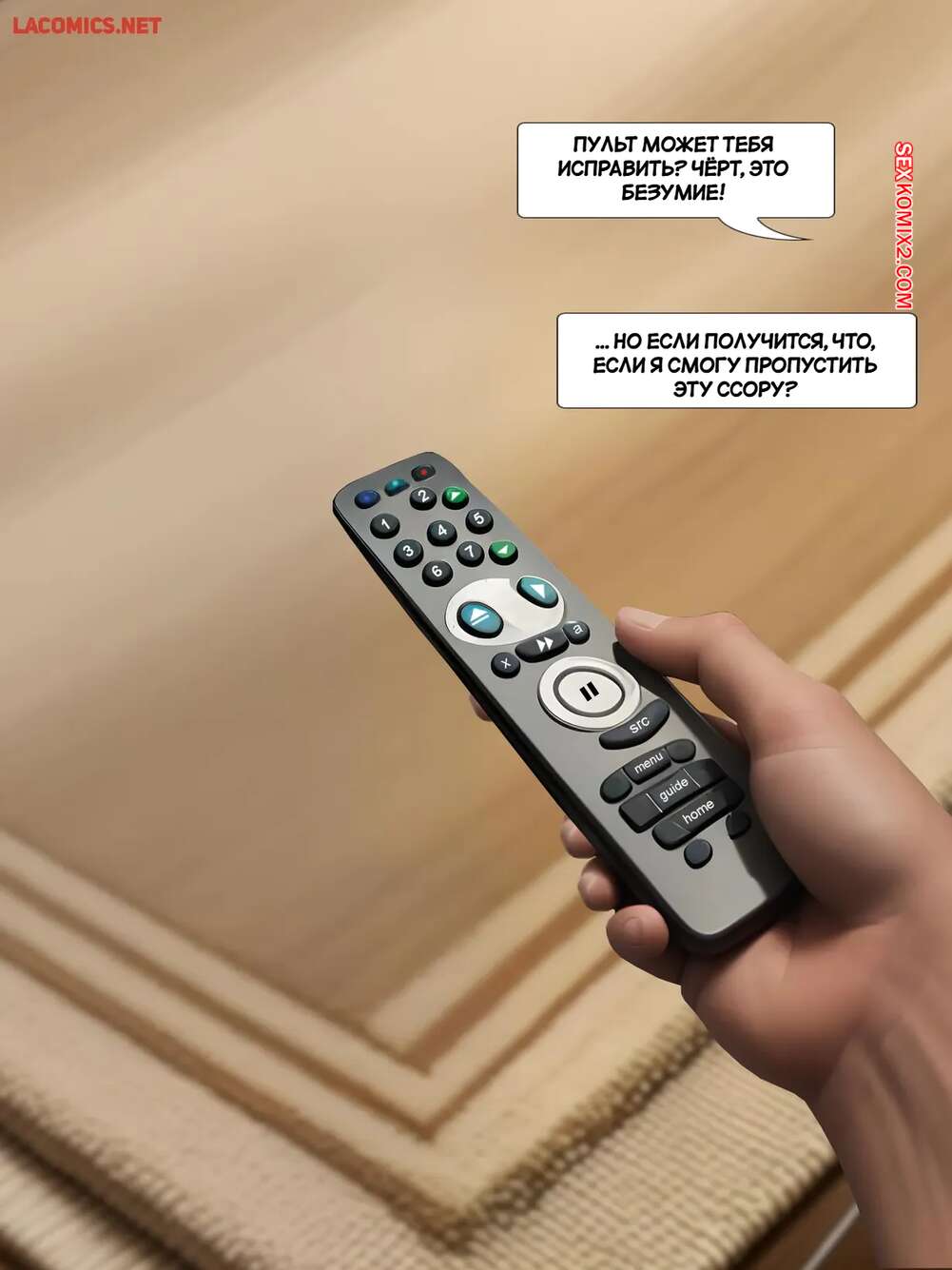 Порно комикс Плохой прием. Bad Reception Горячая брюнетка вернулась домой и застала своего парня за просмотром порно. Она стала на него орать, но парнишка использовал пульт, чтобы возбудить красотку и перенести ее в порно на телевизоре.