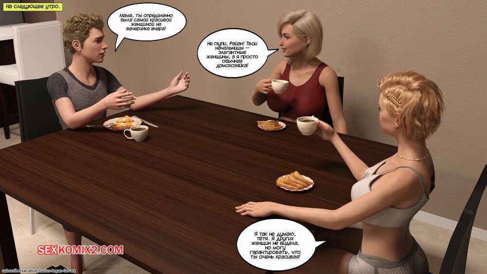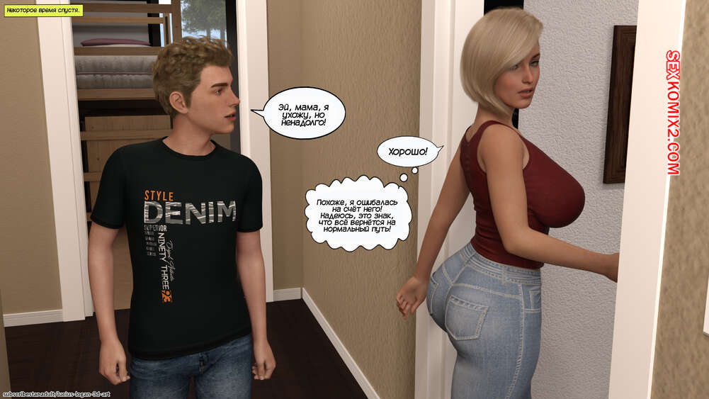 Порно комикс Почему не я тоже. Часть 5. Why Not Me Too. Lucius Logan Райан подарил мамочке коробку с сюпризом, в которой лежало короткое платье и чулки. Красотка надела на себя подаренный наряд, после чего отправилась в комнату к сыну, который устроил ей романтик.