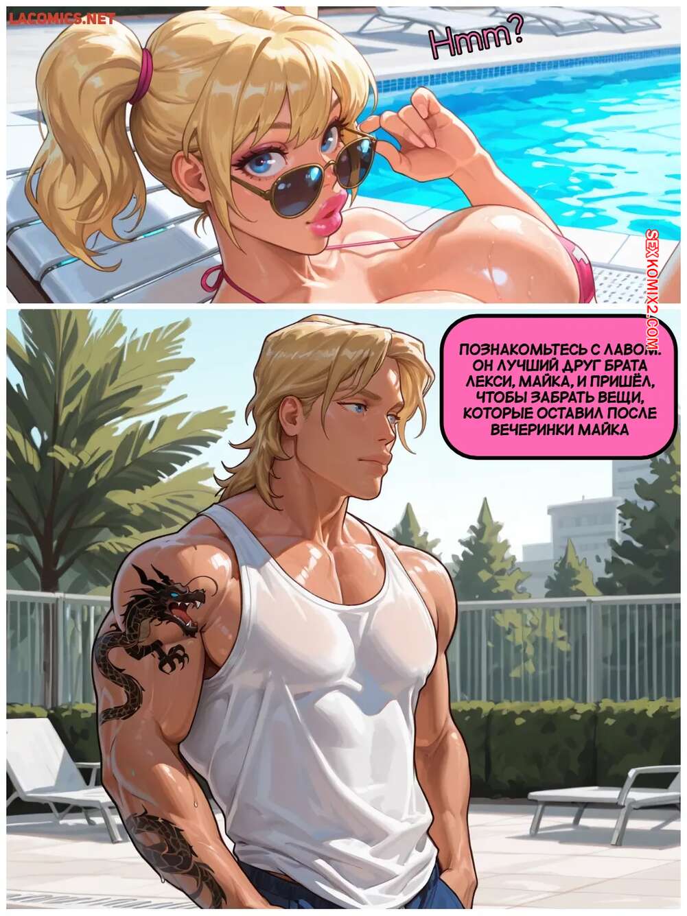 Порно комикс Дом на лето. A Lav Story. Home for the Summer. Proxy. Горячая блондинка надела сексуальный купальник и решила позагорать у бассейна. Ее застал лучший друг брата девушки, который сразу положил глаз на ее аппетитные формы.