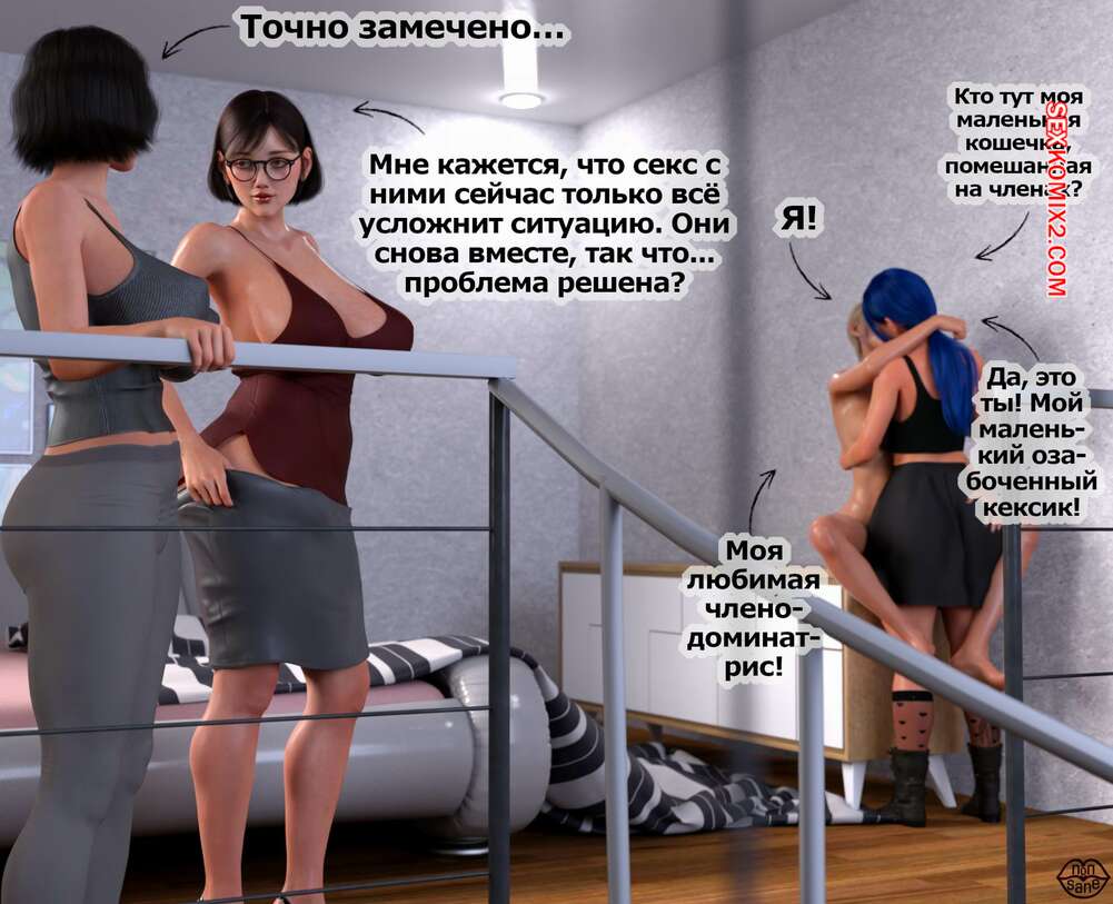 Порно комикс Adicktion Therapy. Часть 7. Nonsane Блондиночка встретилась со своими подругами с большими хуями, чтобы повеселиться. Красотка легла на диван и раздвинула ножки, после чего дала себя выебать во все дырочки.